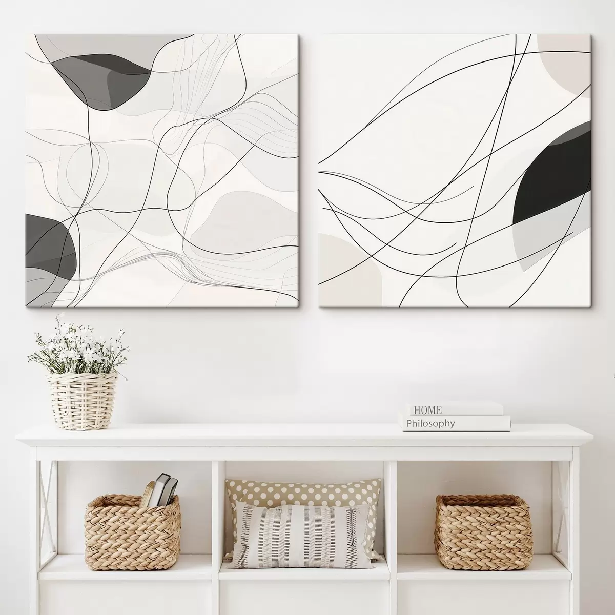 Obraz Estetyka graficzna: abstrakcyjne krzywe na jasnym tle w stylu minimalistycznym m30353