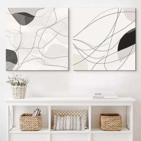 Obraz Estetyka graficzna: abstrakcyjne krzywe na jasnym tle w stylu minimalistycznym Nr m30353