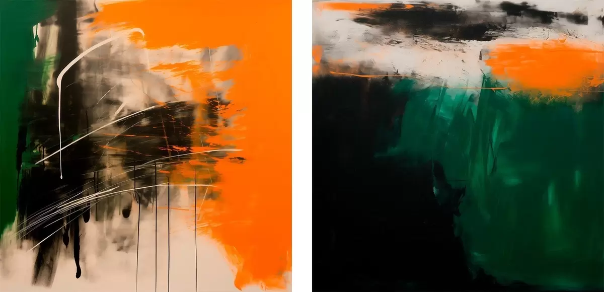 Obraz Kompozycja charakteryzująca się wyrazistymi pociągnięciami pędzla i głębokimi, ciemnymi barwami, utrzymana w stylu minimalistycznym Nr m30359