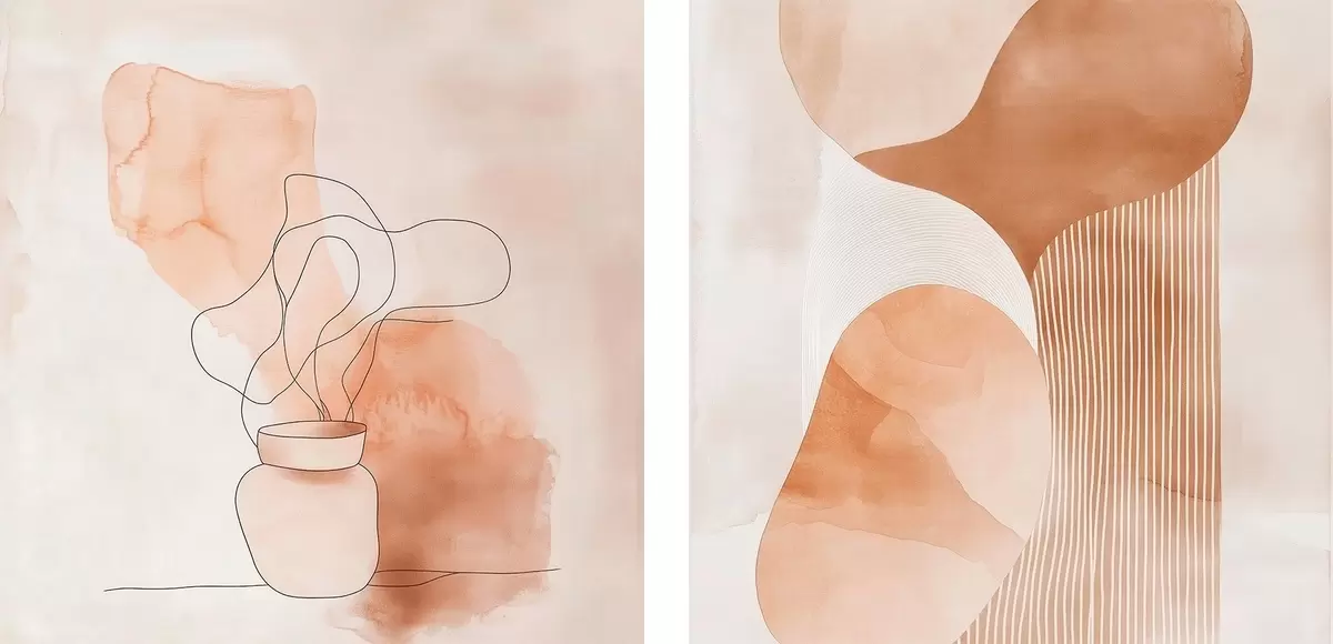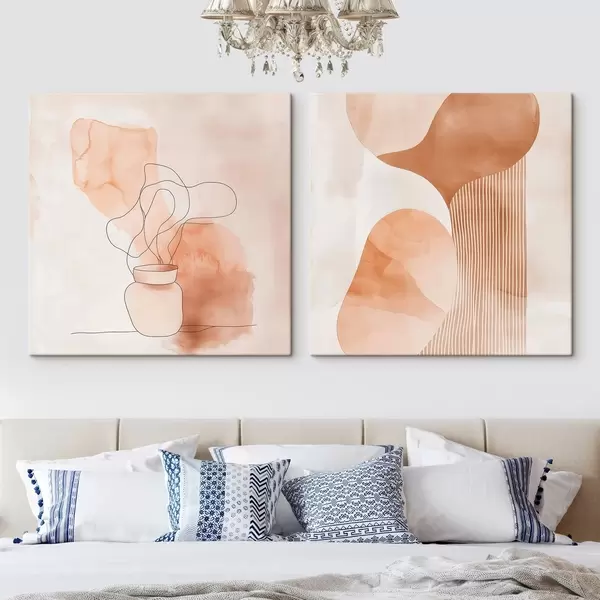 Obraz Abstrakcyjne formy w beżowo-brzoskwiniowej kolorystyce z liniowymi akcentami w stylu minimalistycznym Nr m30361