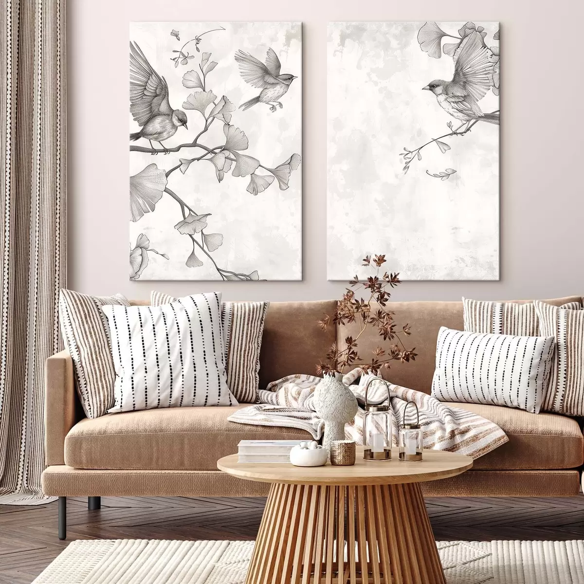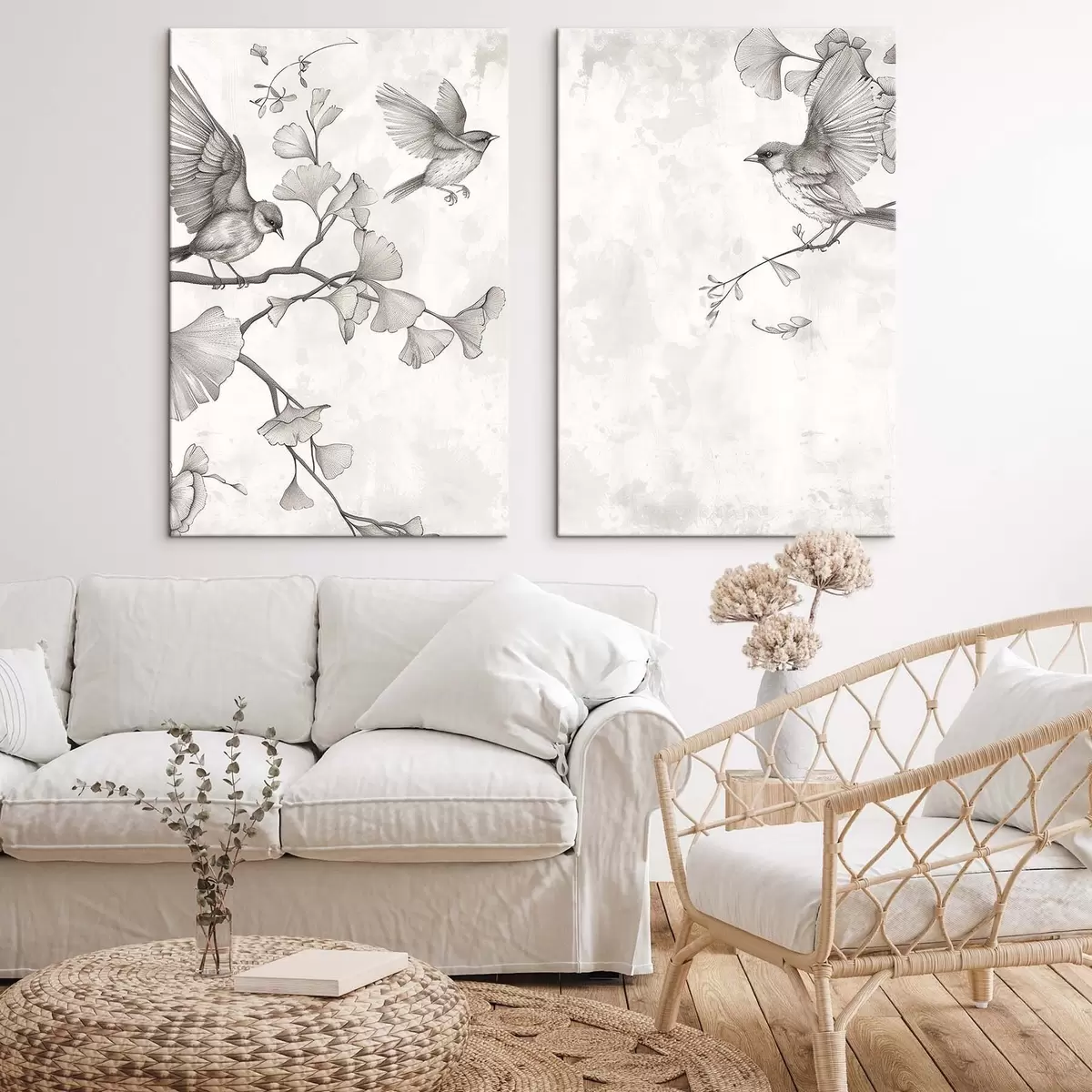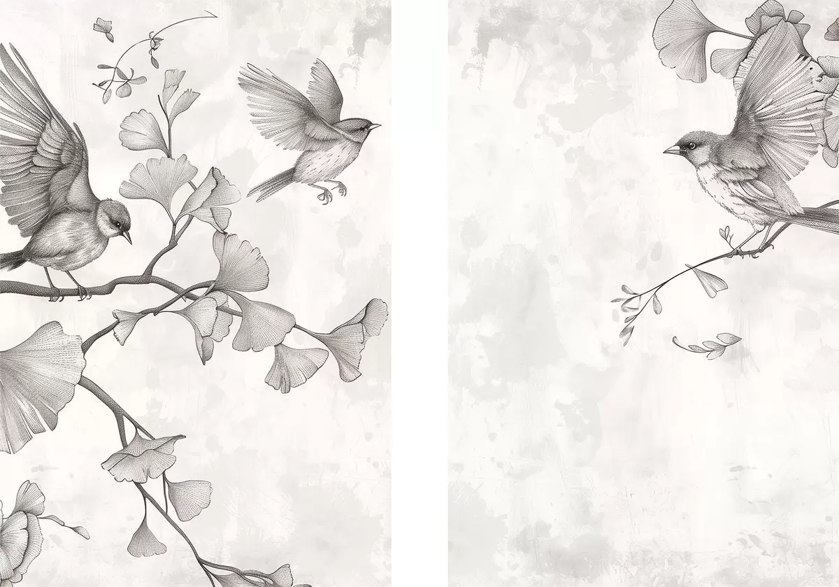 Obraz Ptaki na gałęziach miłorzębu Nr m30380