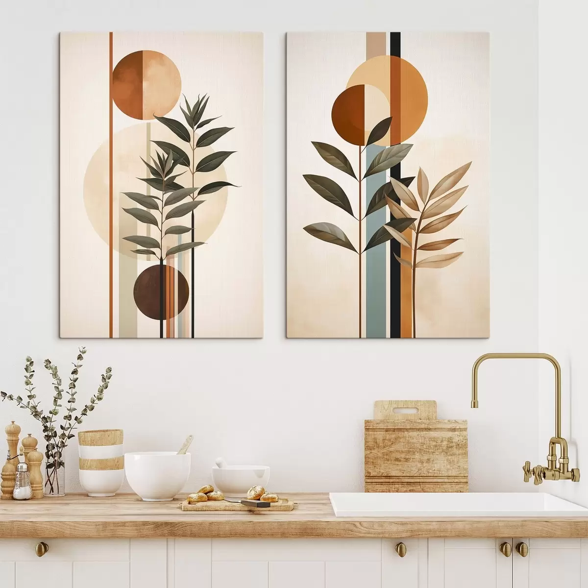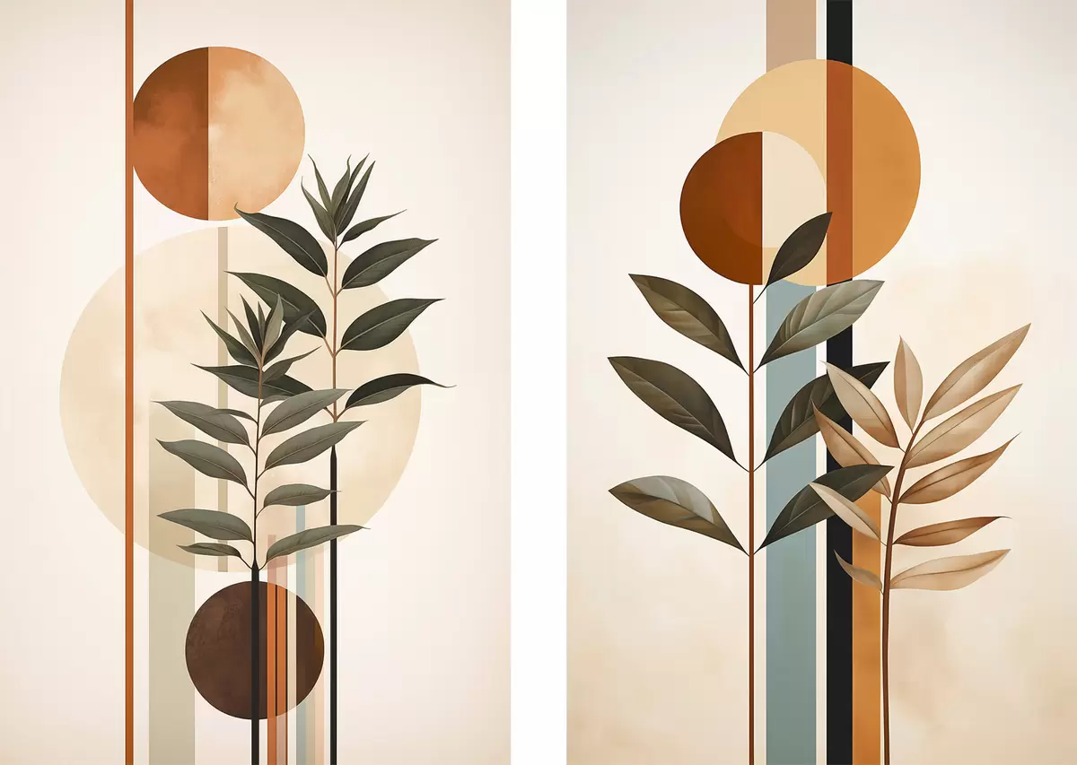 Obraz Abstrakcyjne rośliny z okręgami i liniami Nr m30392