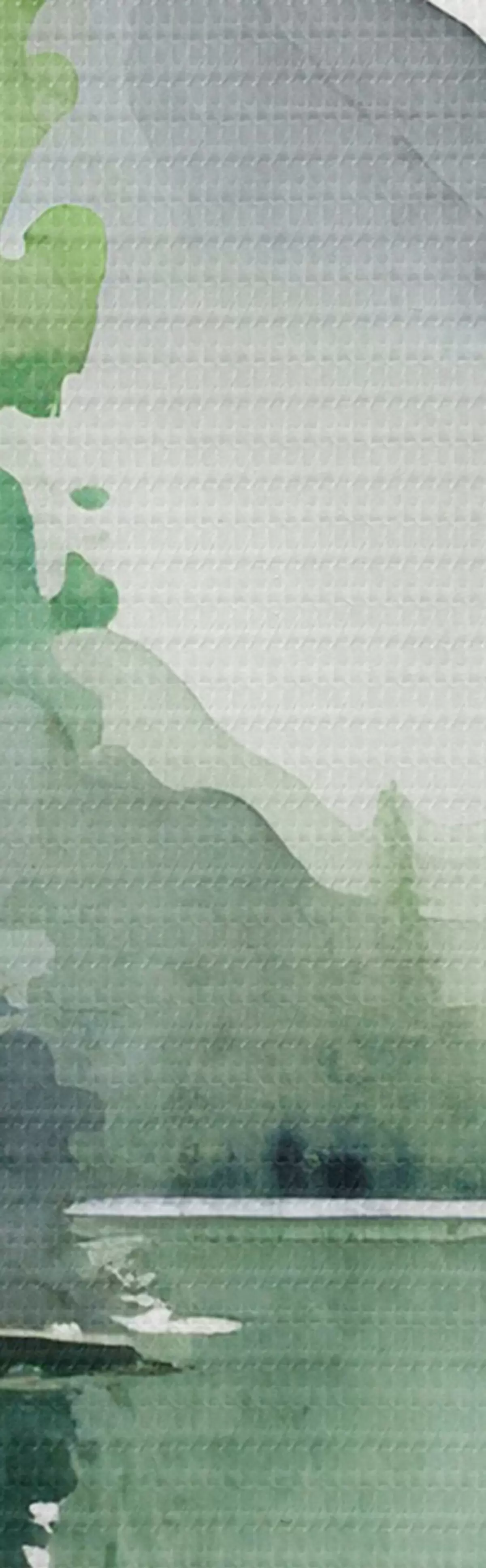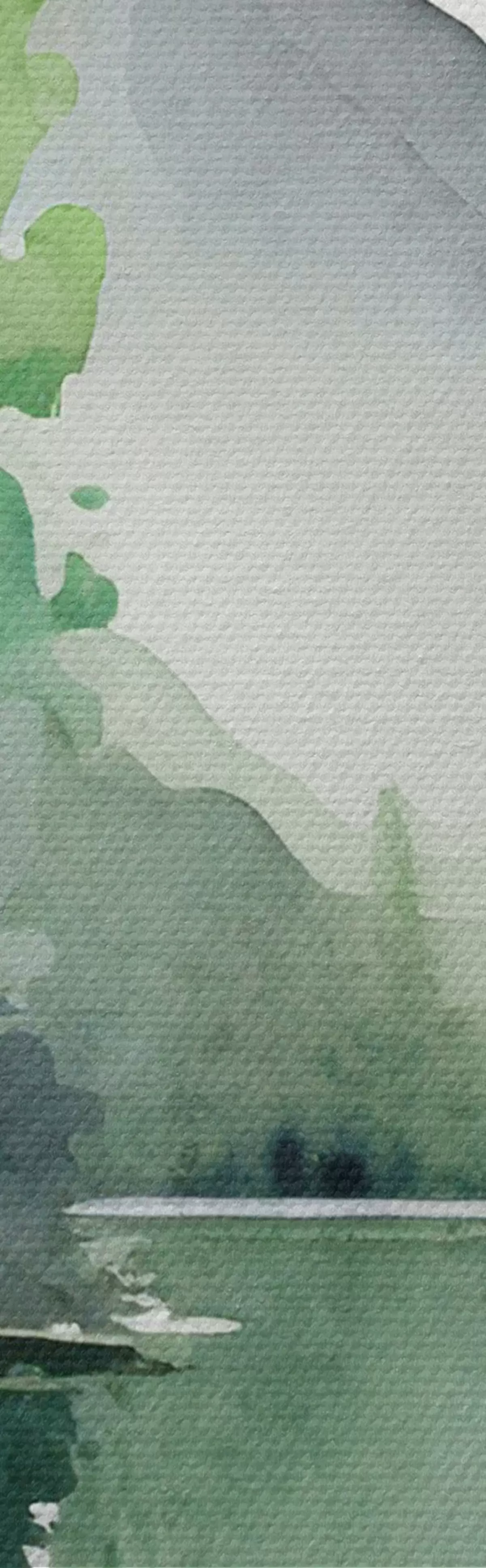 Obraz Akwarela Jezioro i leśny krajobraz, wiosna, delikatne naturalne zielone kolory s36503