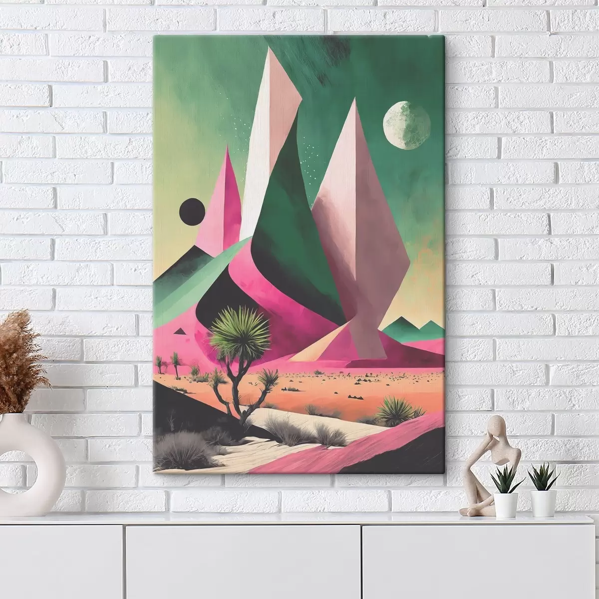 Obraz Pustynny krajobraz z drzewami i górami Nr s37360