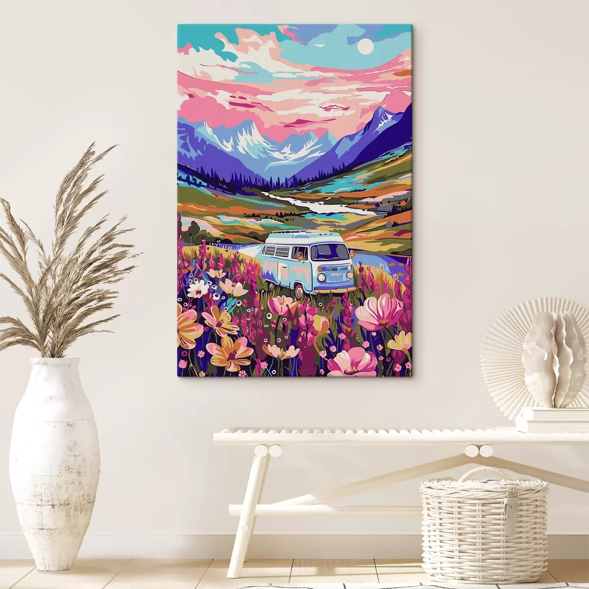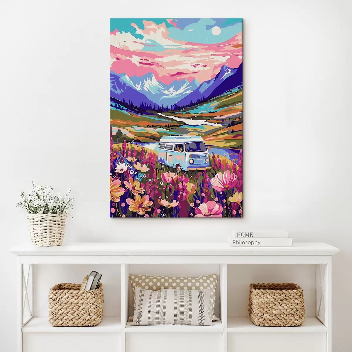 Obraz Furgonetka przejeżdżająca przez pole kwiatów Nr s38260