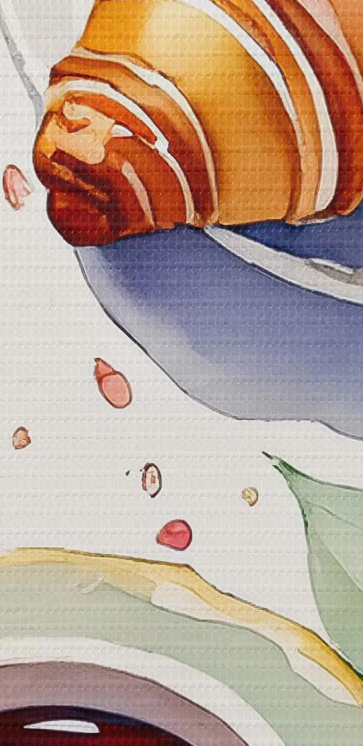 Obraz Akwarela rogalik, filiżanka herbaty, śniadanie, cytryny, styl rustykalny Nr s38389