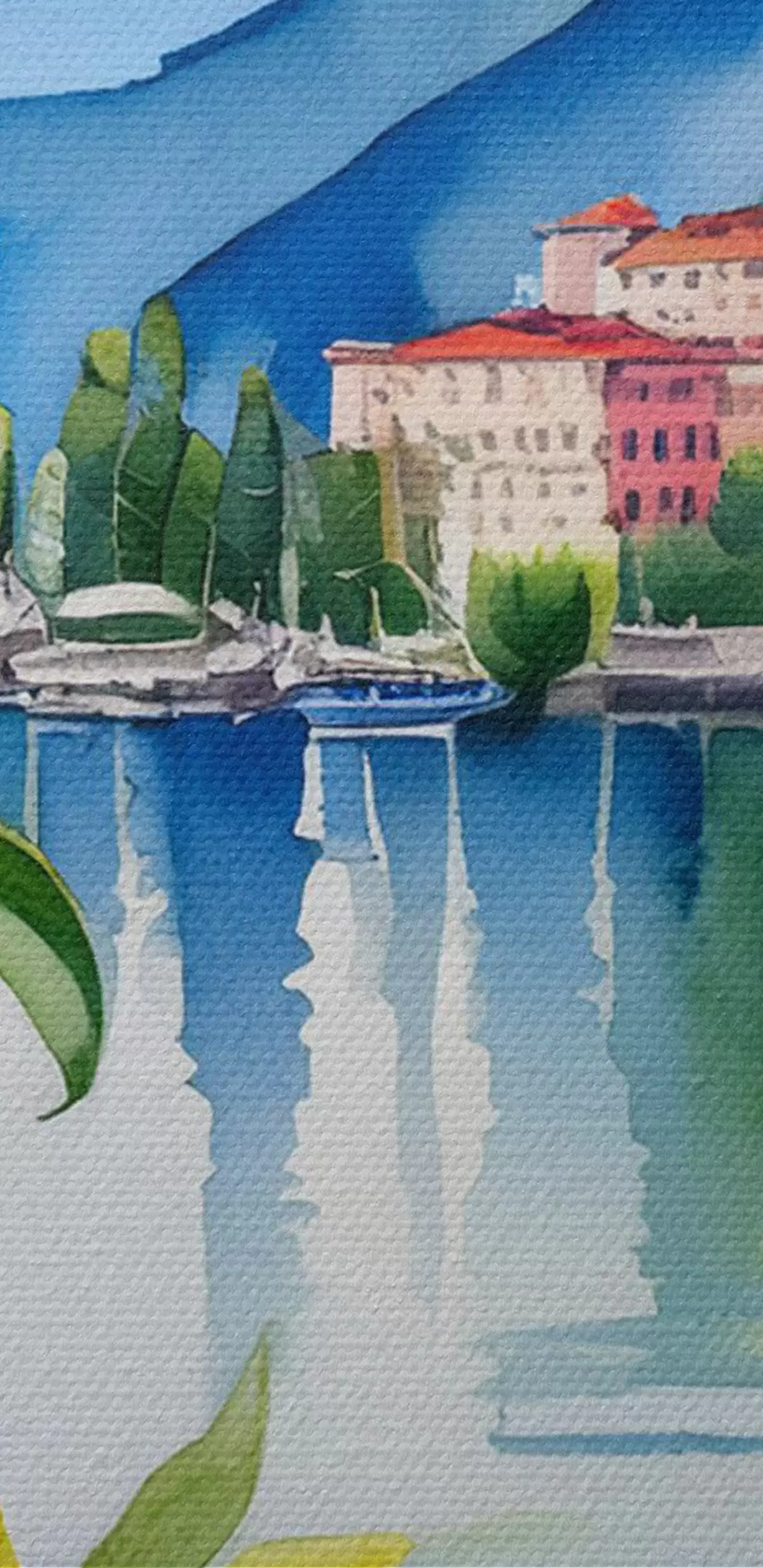 Obraz Jezioro Como, akwarela, Włochy, lato, góry, drzewo cytrynowe, morze, stare miasto Nr s38398