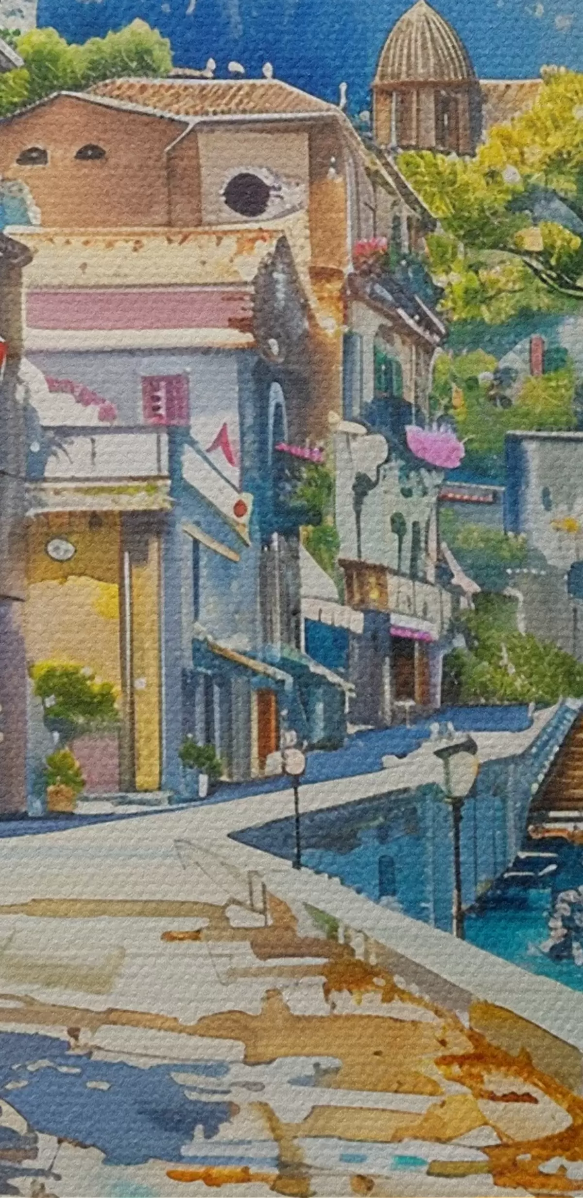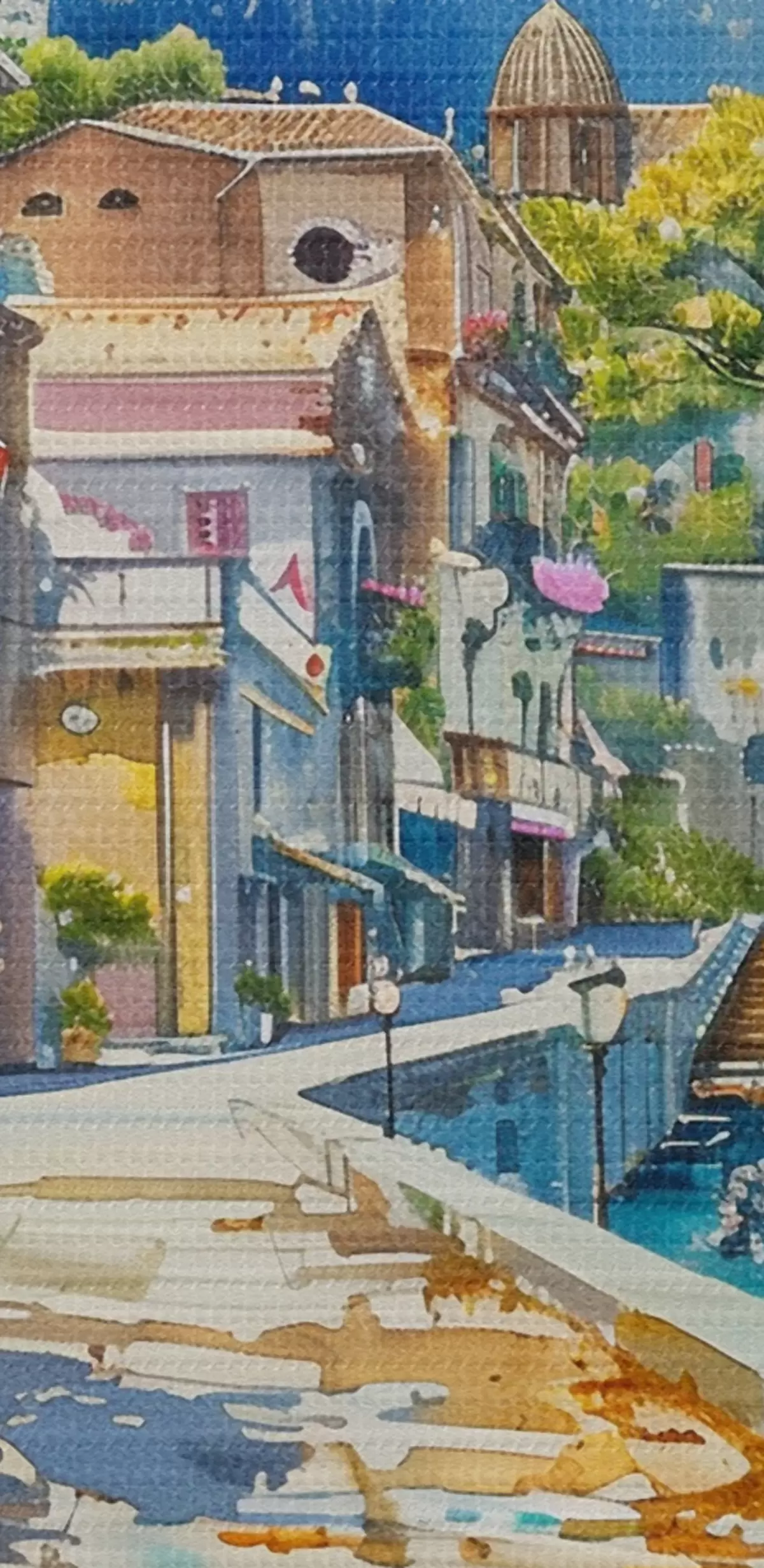 Drobny splot nici na tym płótnie przypomina powierzchnię profesjonalnych płócien artystycznych.