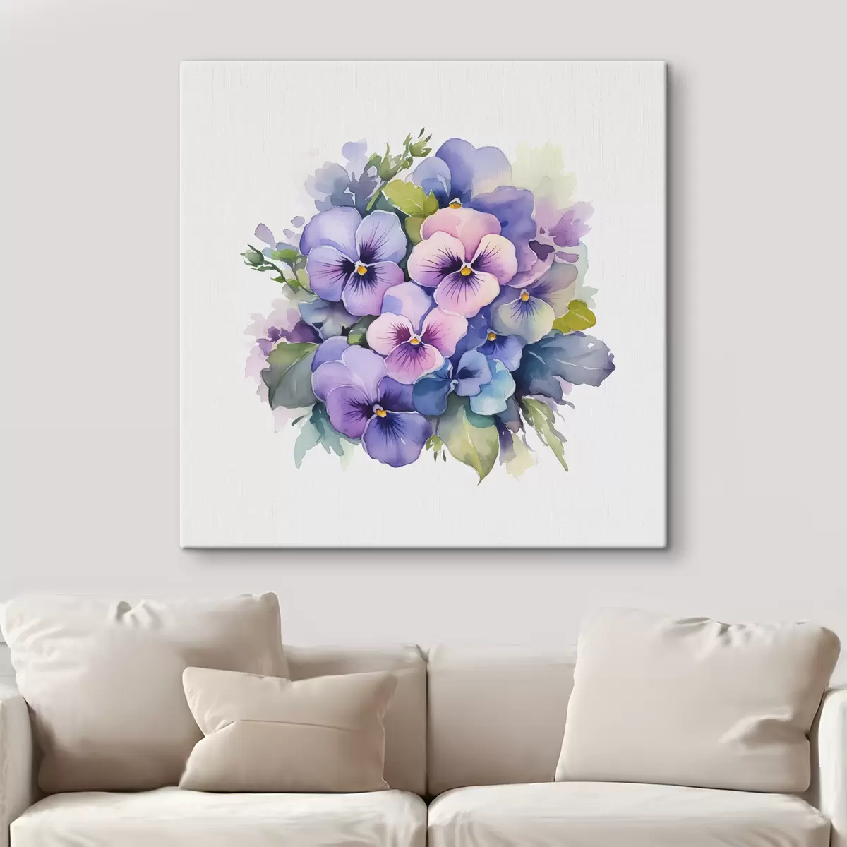 Obraz Fiołki akwarela ilustracja, bukiet, kwiaty, kolor niebieski, fioletowy, zielony Nr s38486