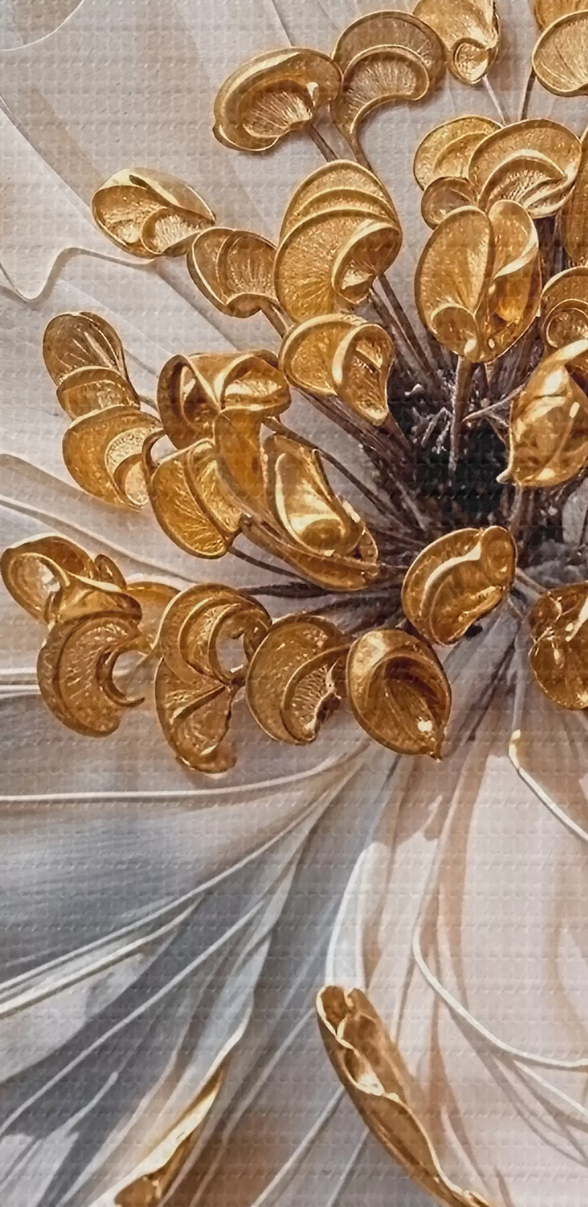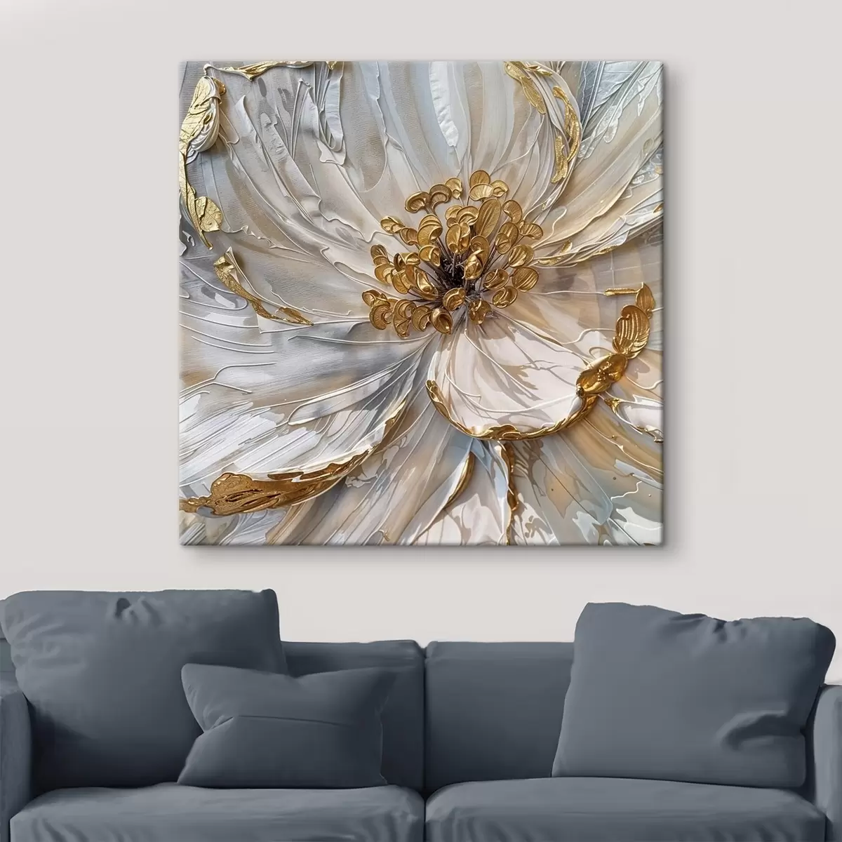 Obraz Zbliżenie dużego białego kwiatu z żółtymi pręcikami w środku, artystyczna dekoracja malowana olejem Nr s38755