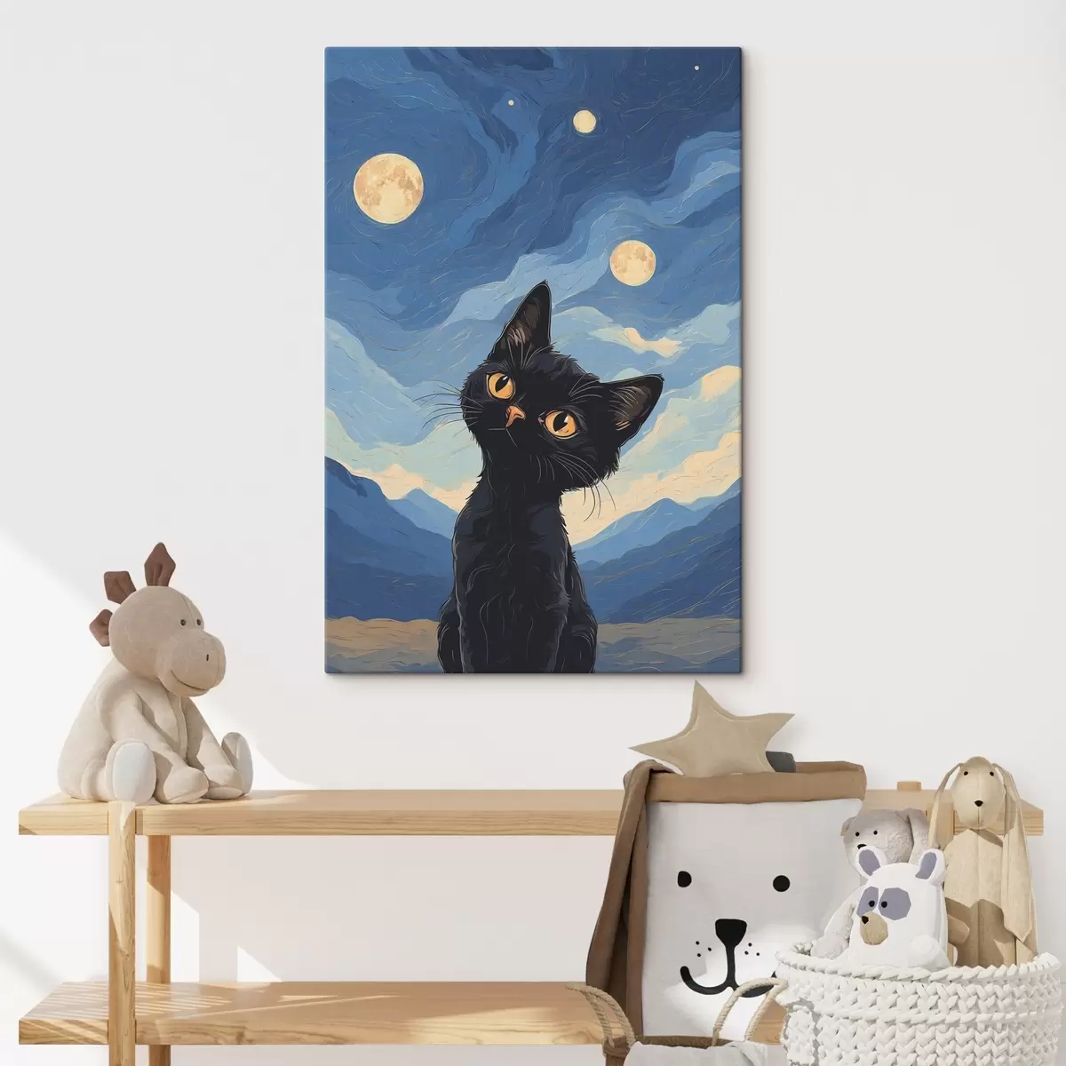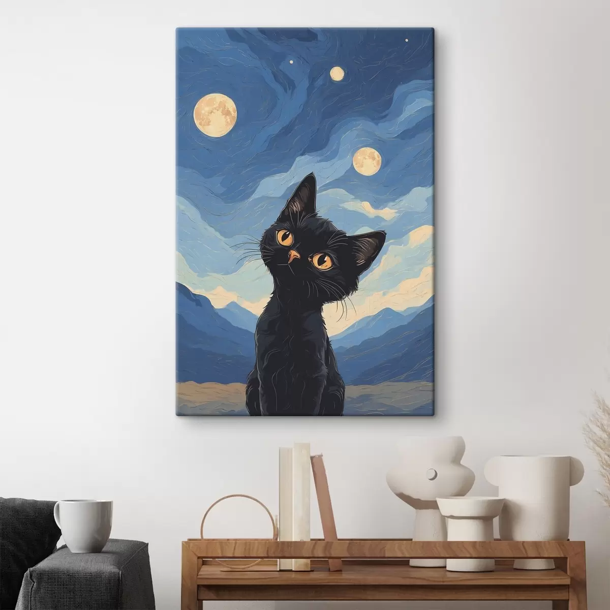 Obraz Ciekawski kot pod rozgwieżdżonym niebem Nr s38860