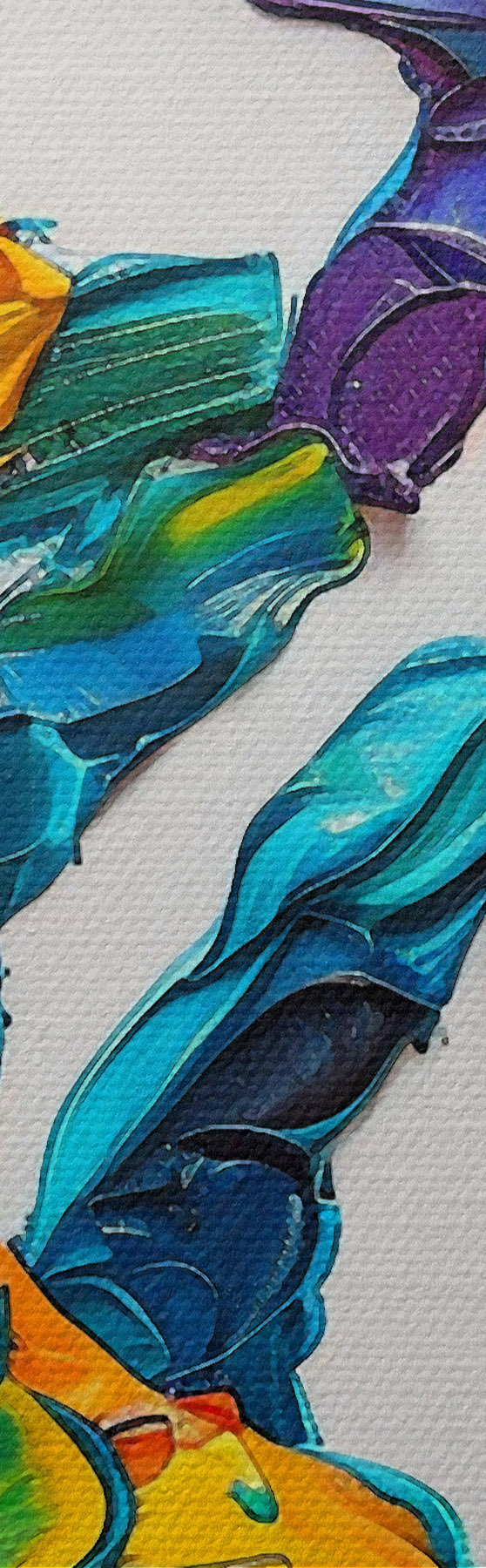 Obraz Kolorowe abstrakcyjne obrazy olejne impasto z żywymi pociągnięciami pędzla farby w kolorze niebieskim, pomarańczowym, żółtym i czerwonym Nr s38955