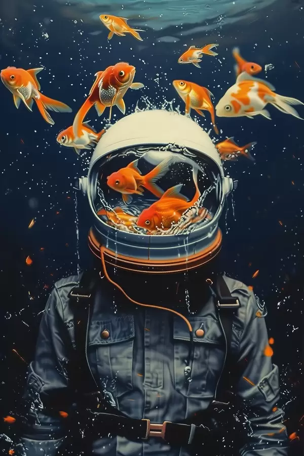 Obraz Astronauta pływający z zabawnymi rybkami Nr s39041