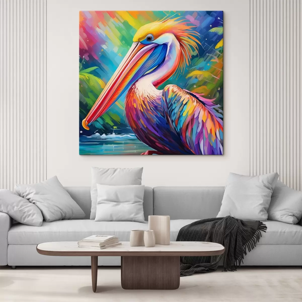 Obraz Żywy pelikan na kolorowym tle Nr s39054