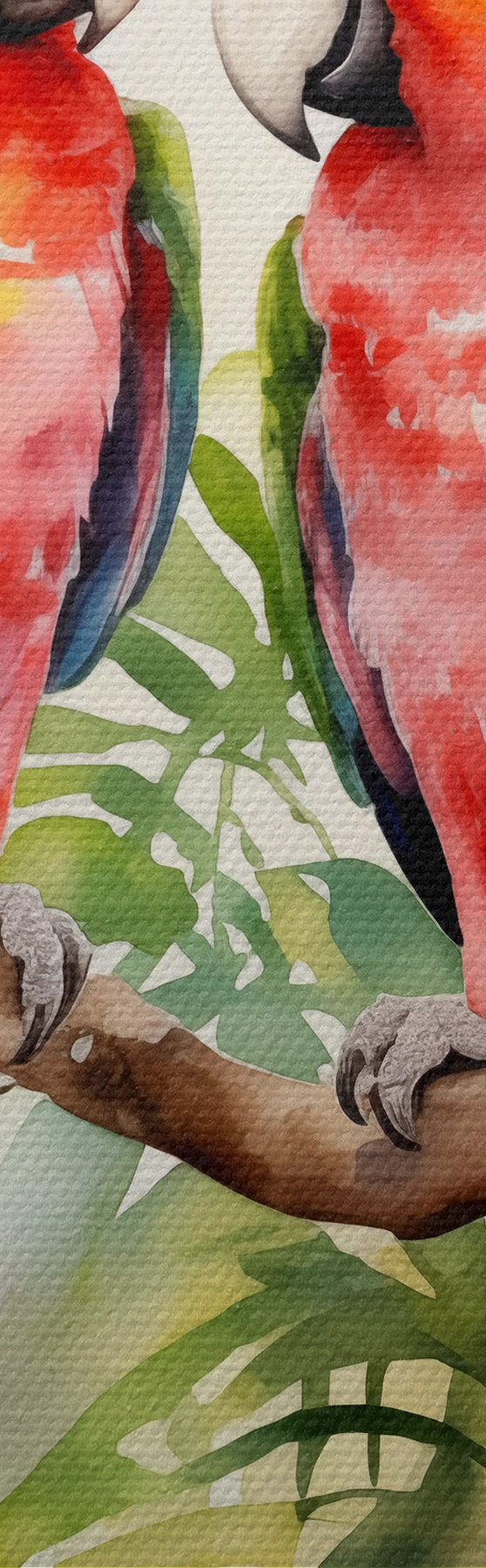 Obraz Dwie jasne papugi ara siedzące na akwareli na jednej gałęzi Nr s39333