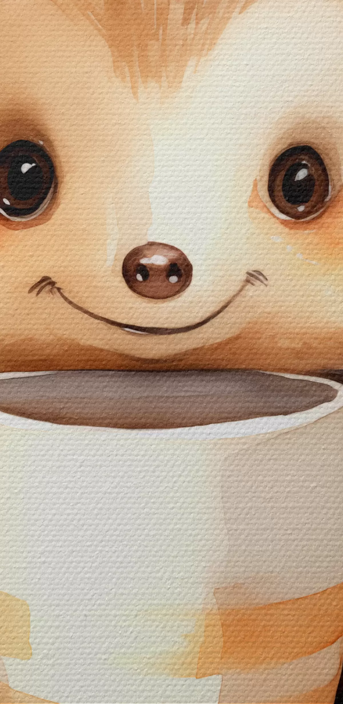 Obraz Jeż trzymający biały kubek w łapach akwarela ilustracja dla dzieci Nr s39440