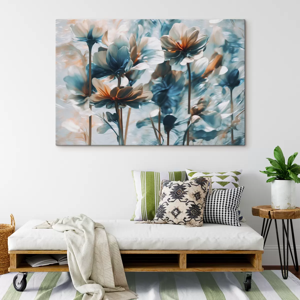 Sprzedajemy obrazy na blejtramie - jest to drewniana rama, na którą naciągnięte jest płótno. Tego obrazu nie trzeba oprawiać; można go powiesić bezpośrednio na ścianie.