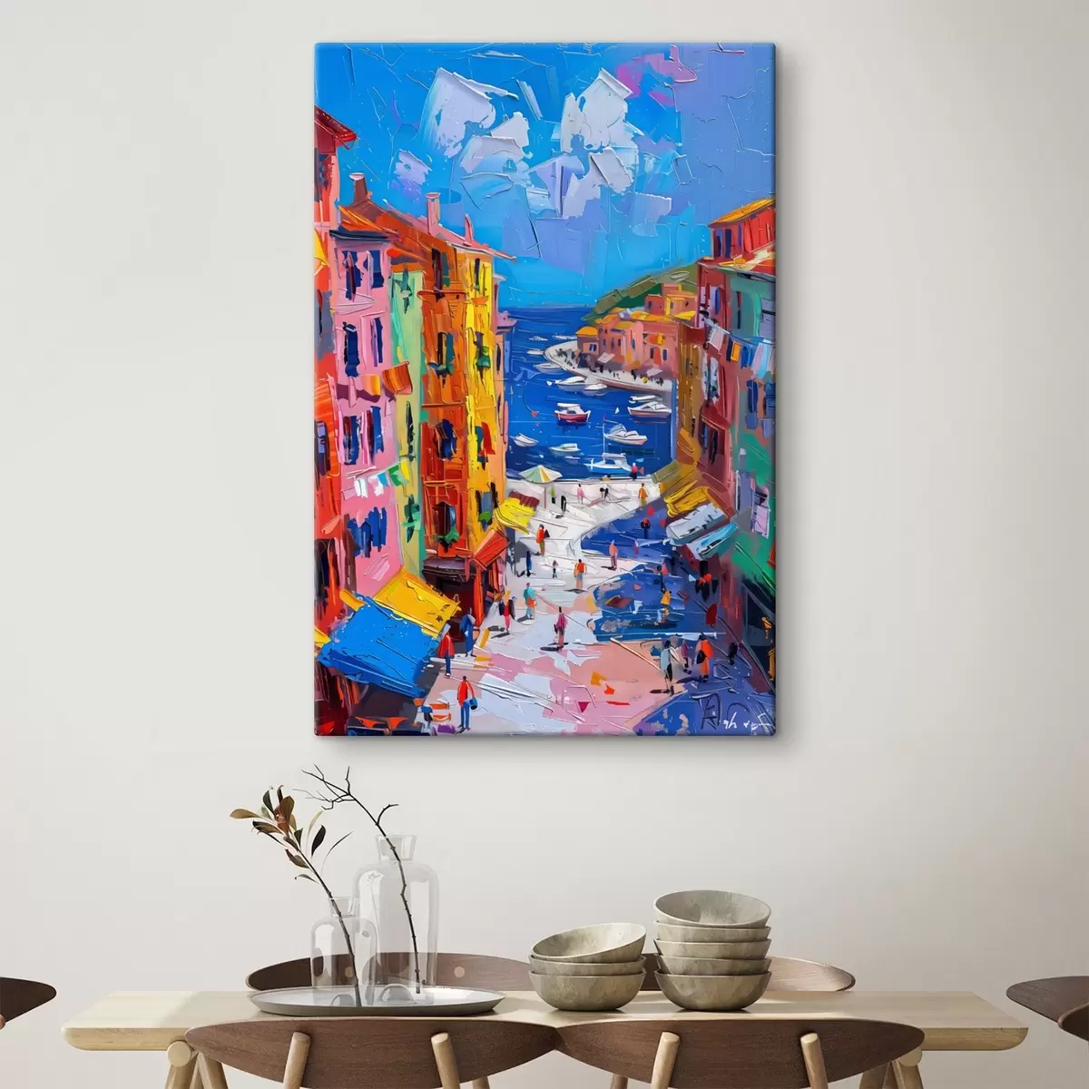 Obraz można powiesić natychmiast po jego otrzymaniu. Obraz zostanie naciągnięty na drewniany blejtram o szerokości 2 cm.