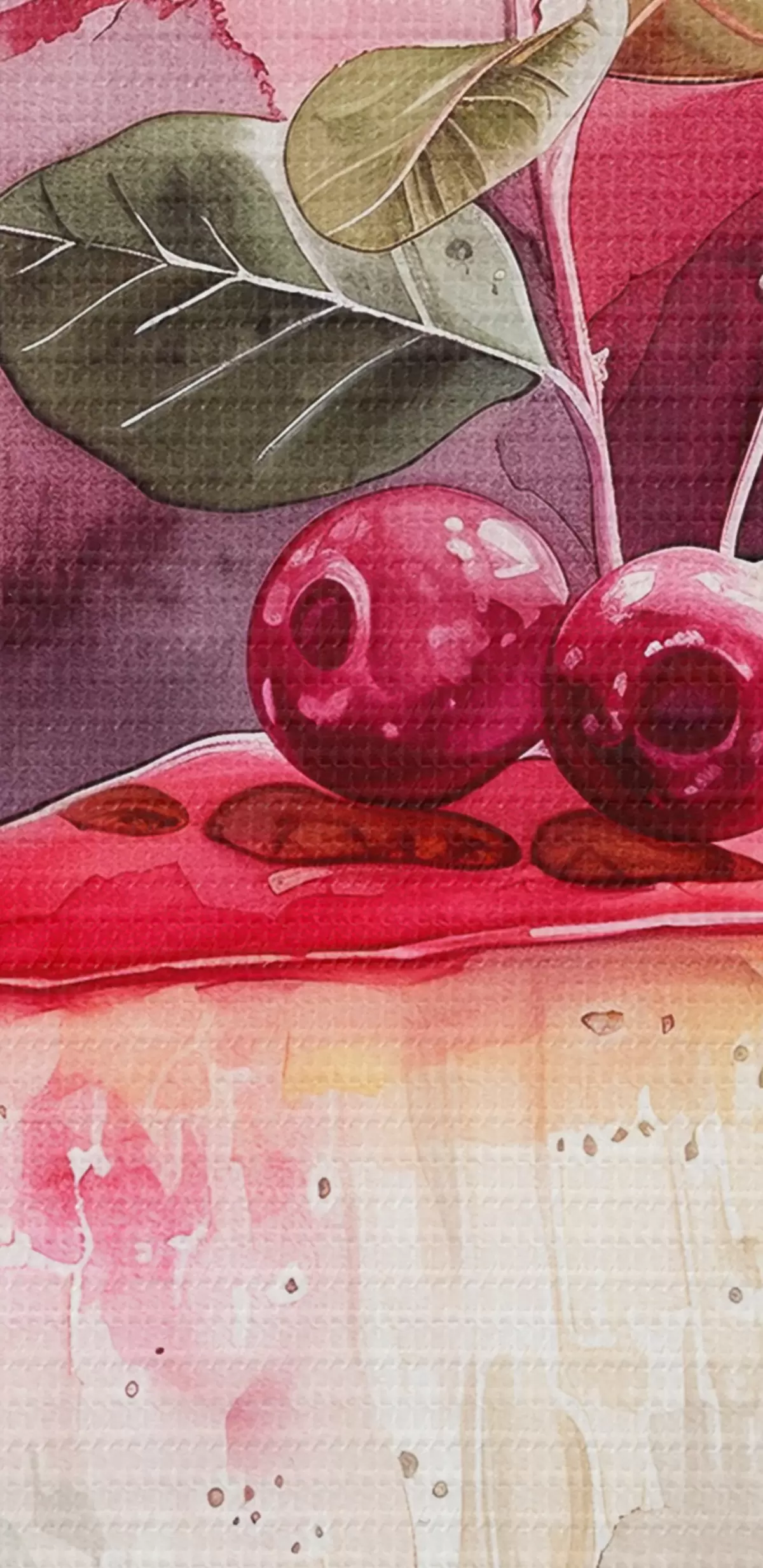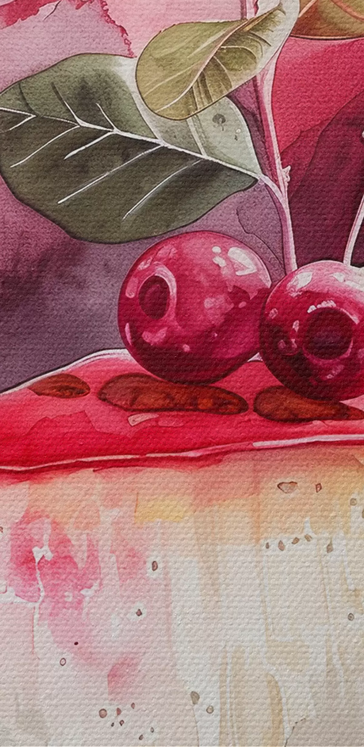 Obraz Akwarelowy sernik z wiśniami, elegancka sztuka kulinarna, kolory czerwony i fioletowy Nr s39700