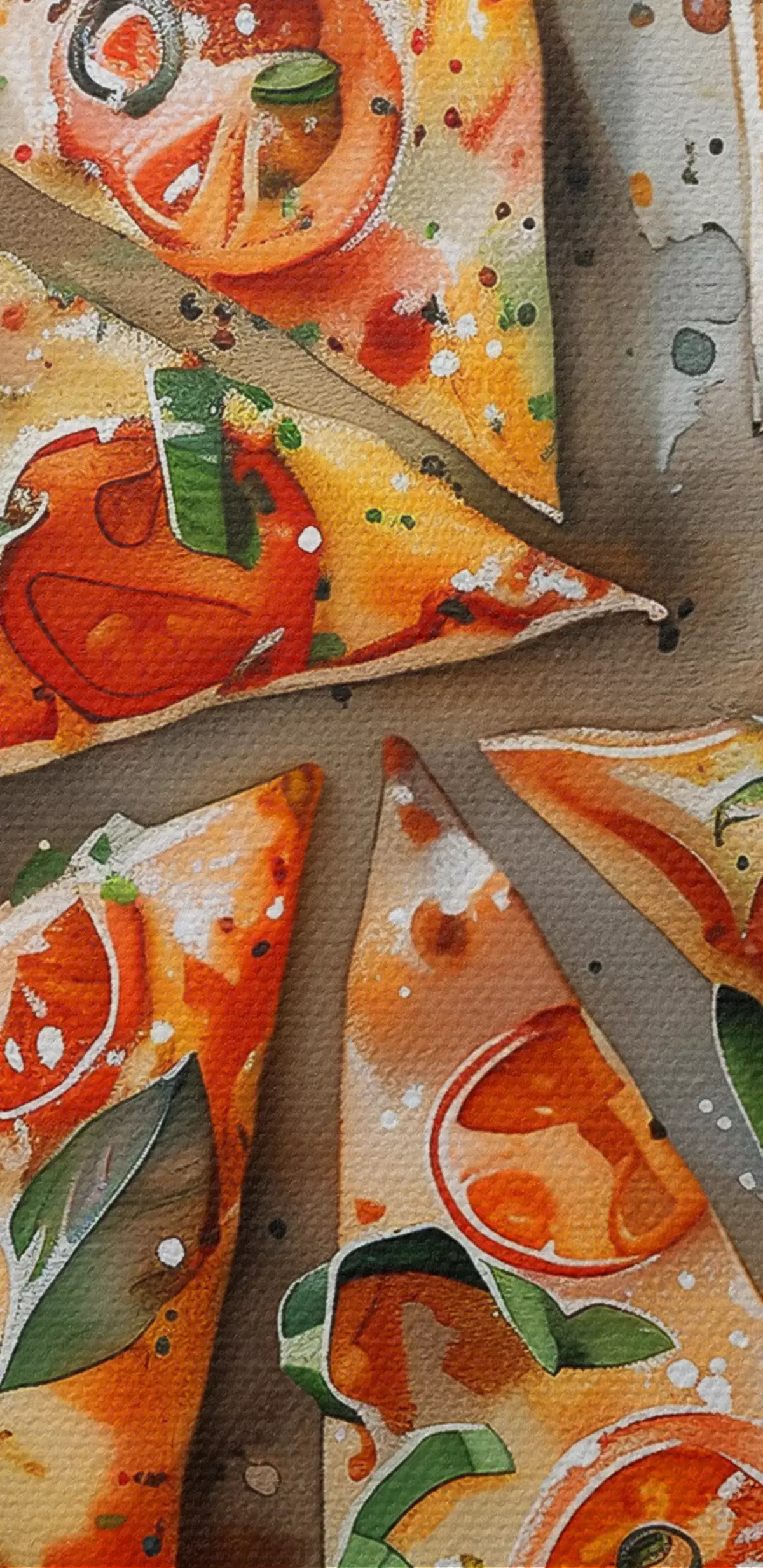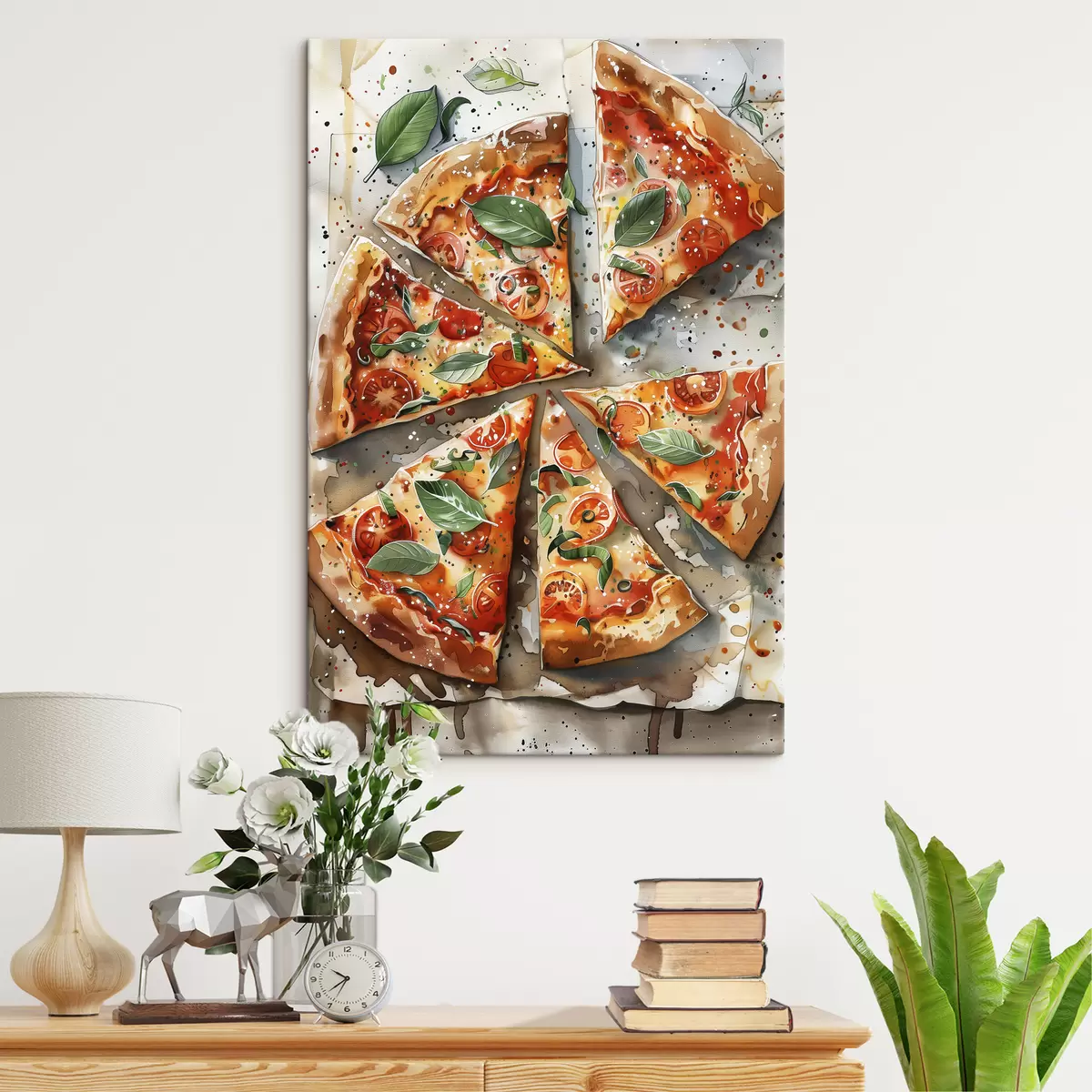 Obraz Pyszna włoska pizza, akwarelowa sztuka kulinarna, margarita, pomidory Nr s39703