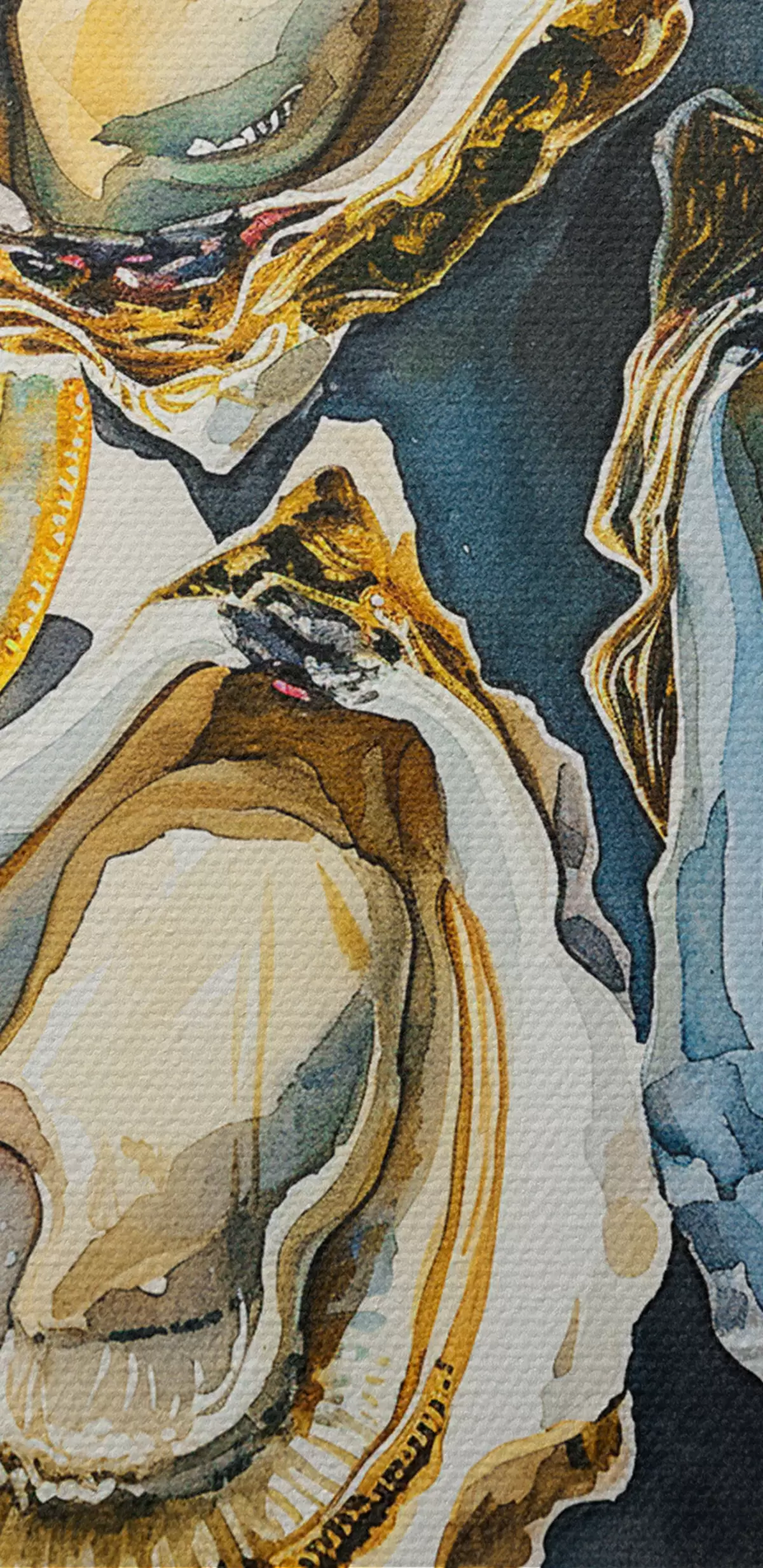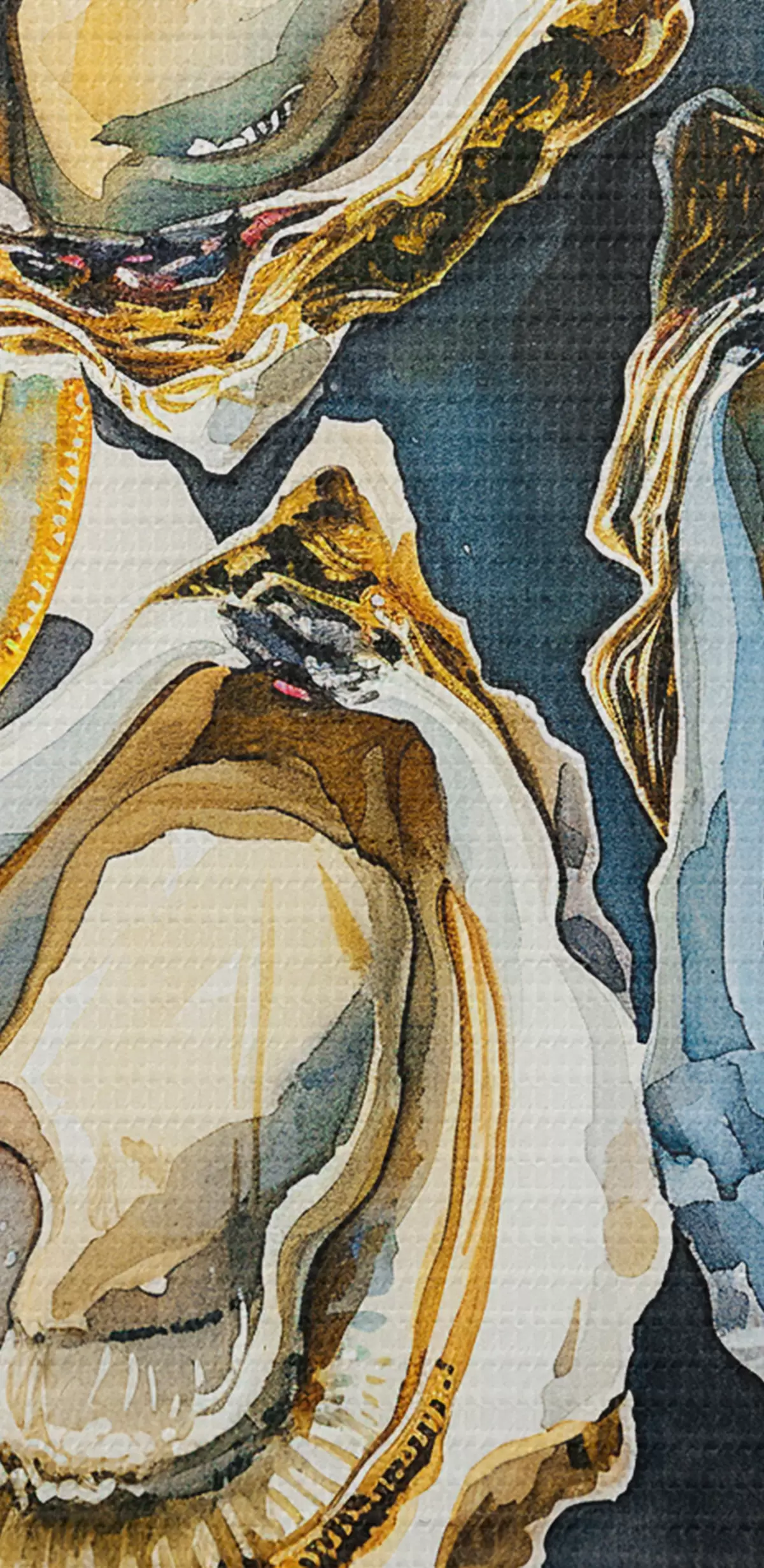 Obraz Eleganckie ostrygi na talerzu, akwarela, cytryny, naturalne kolory, śródziemnomorski s39711