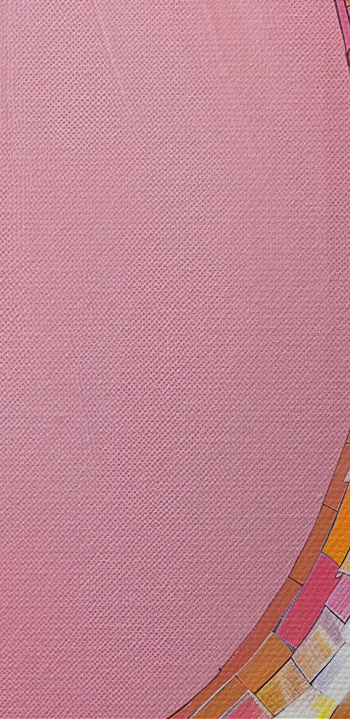 Obraz Malowana olejem banayowa kula dyskotekowa z jasnopastelowym różowym tłem Nr s39766