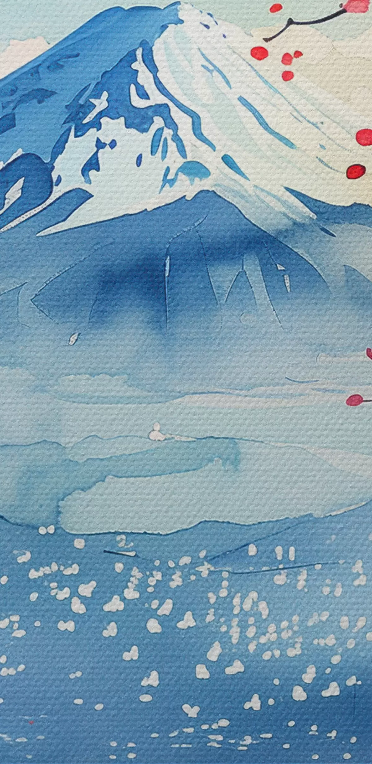 Obraz Górski krajobraz Fuji, orientalna przyroda, wiśnie, zachód słońca Nr s39775