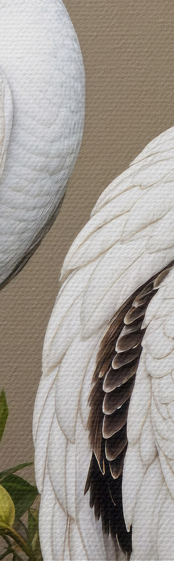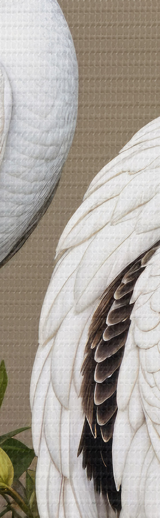 Obraz Dwa białe pawie z ozdobnymi piórami siedzące na gałęzi z kwiatami s40022