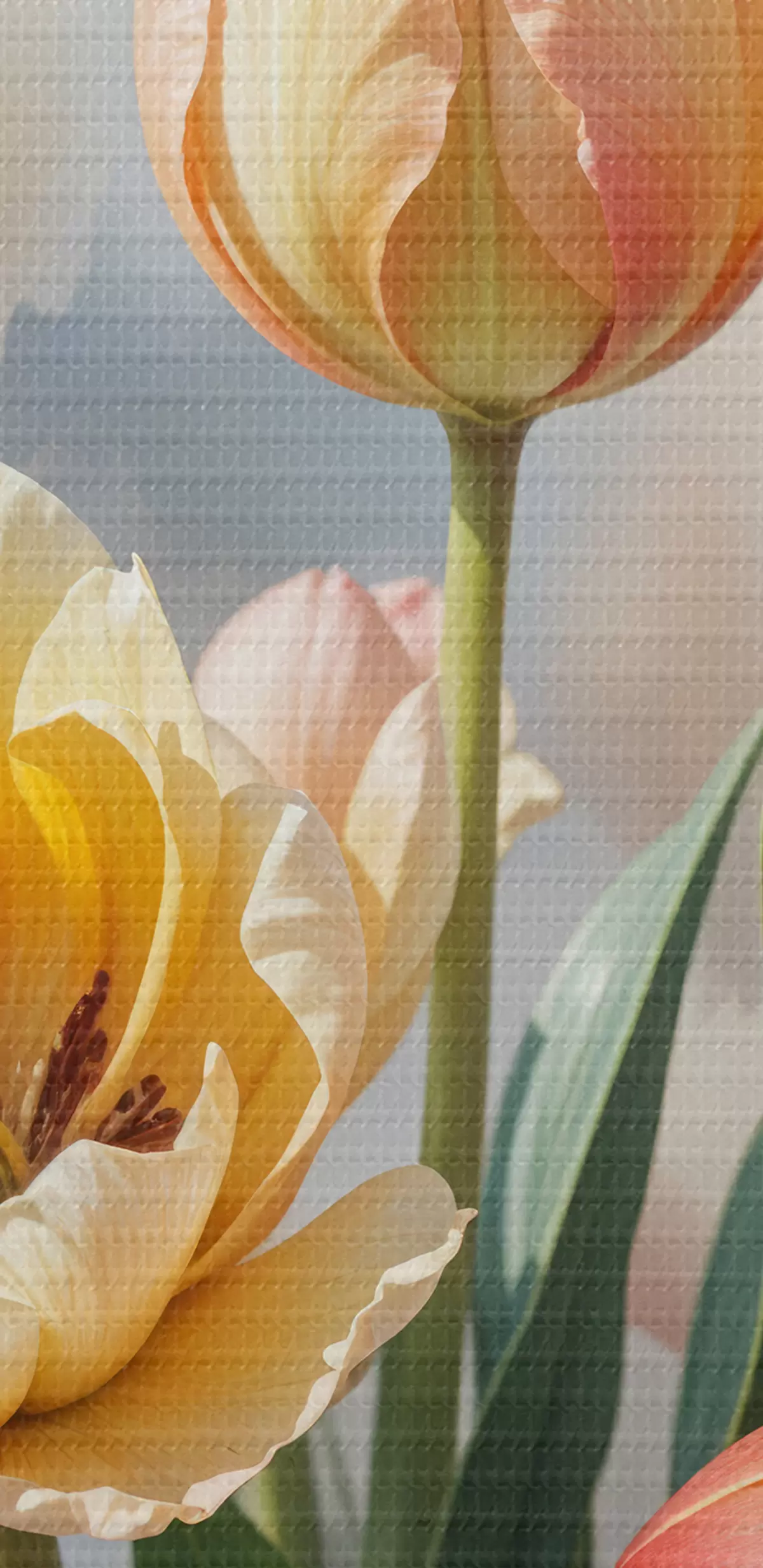 Do zamówienia dostępne są trzy rodzaje materiału: Economic Canvas - gęsty i trwały materiał do druku cyfrowego, identyczny z płótnem malarskim, wodoodporna powierzchnia, realistyczne odwzorowanie szczegółów, materiał średnioziarnisty. Premium Canvas - tekstura przypominająca płótno malarskie (przeplatane drobne nitki). Miękka, szczegółowa reprodukcja obrazu na matowej powierzchni. Eco-Premium - wysokiej jakości tkanina w 100% bawełniana. Dzięki naturalnym włóknom bawełnianym materiał jest trwały i odporny na zużycie. Doskonałe odwzorowanie kolorów i szczegółów.