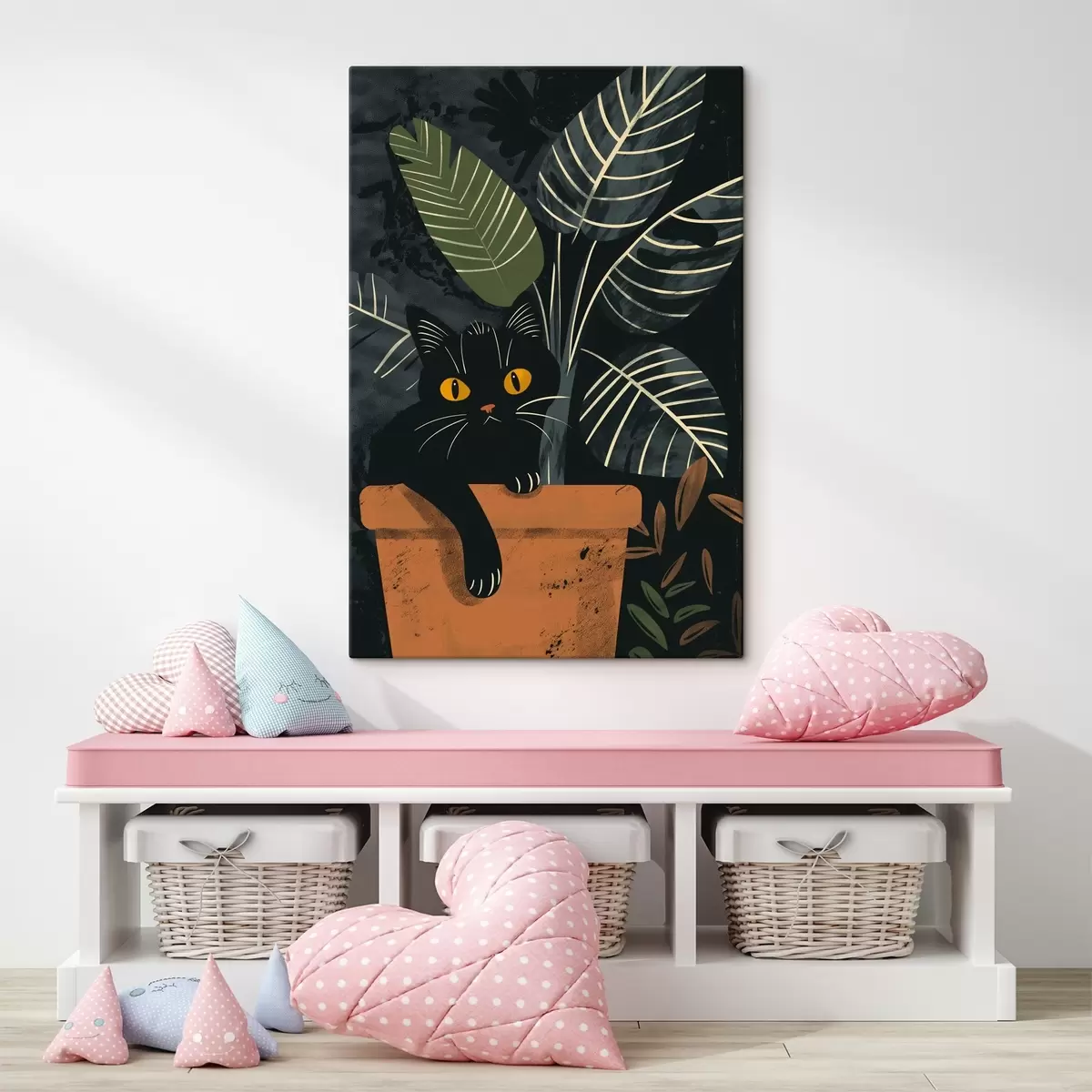 Obraz Kot w doniczce z kwiatkiem Nr s40268