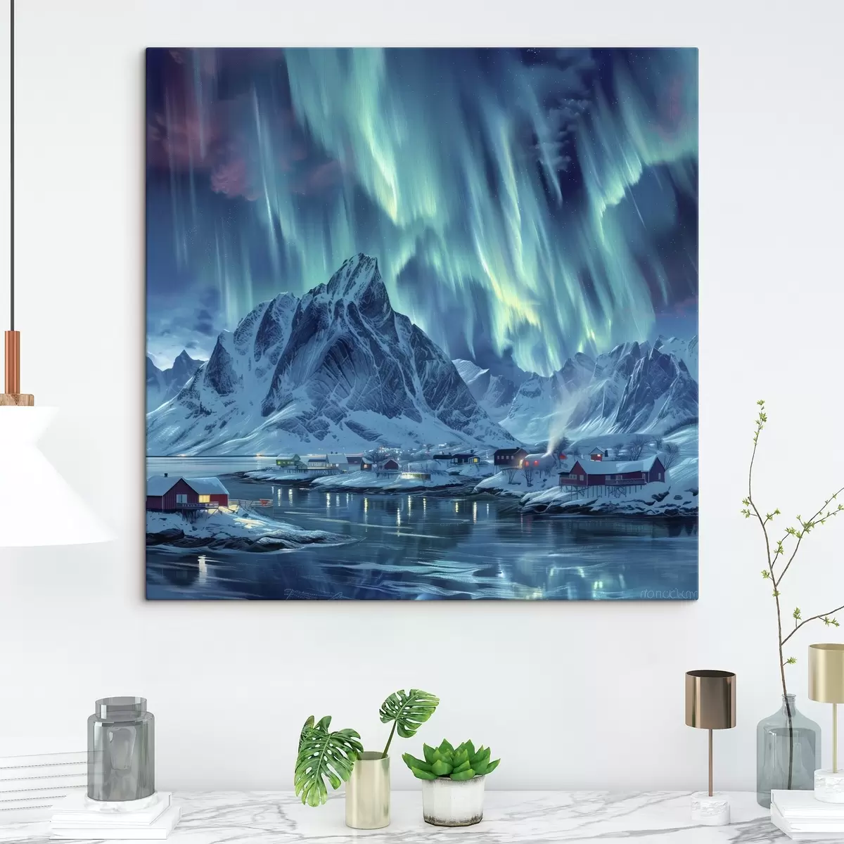 Obraz Magiczne północne światła, zimowa wioska w Norwegii Nr s40301