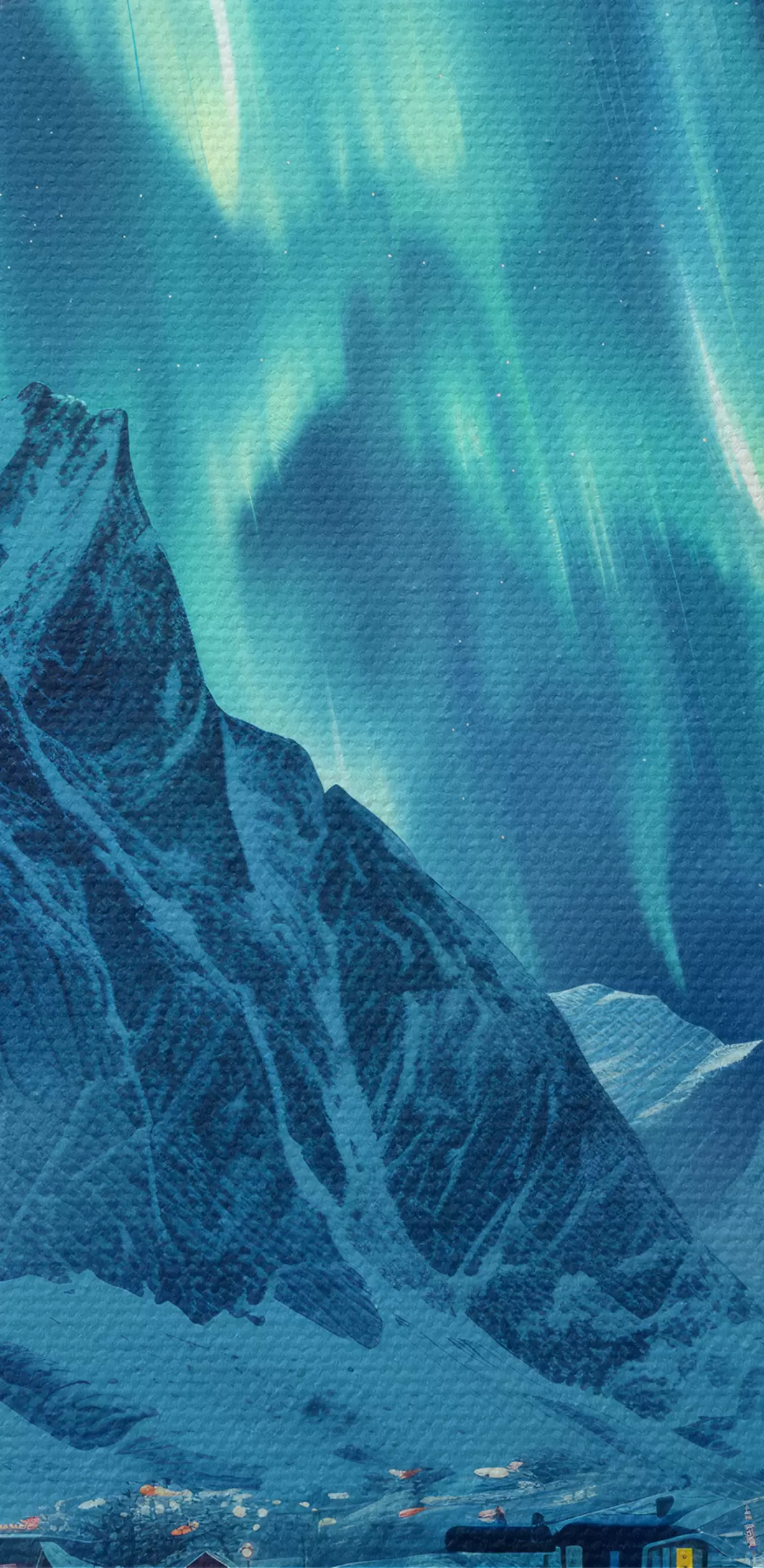 Obraz Magiczne północne światła, zimowa wioska w Norwegii s40301