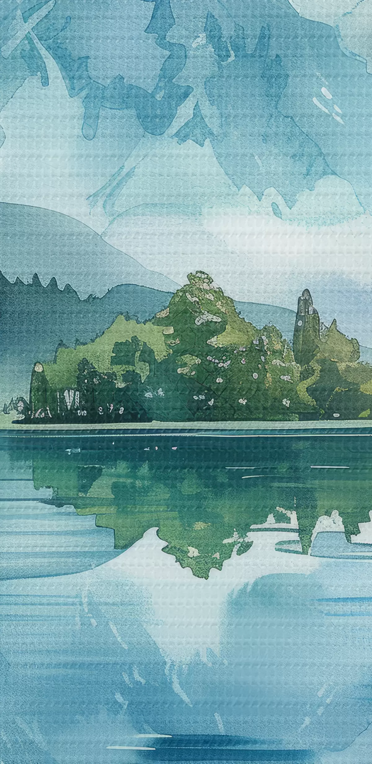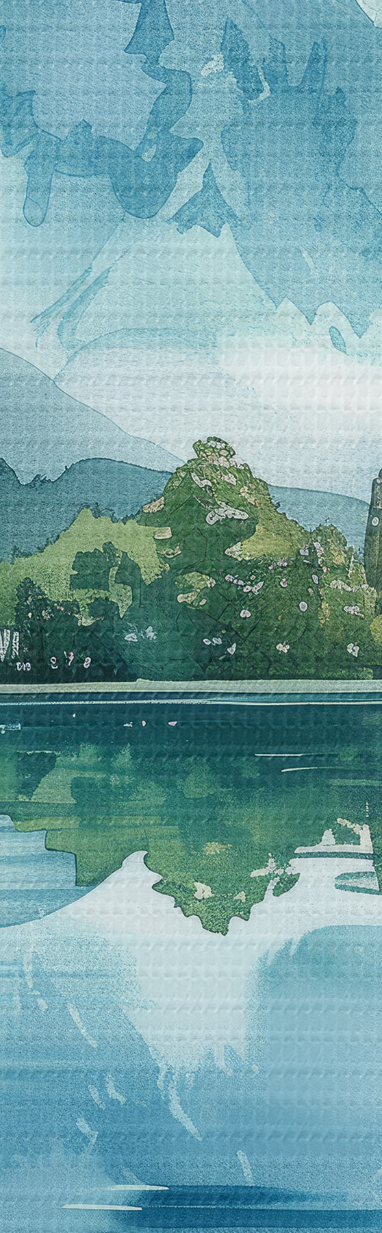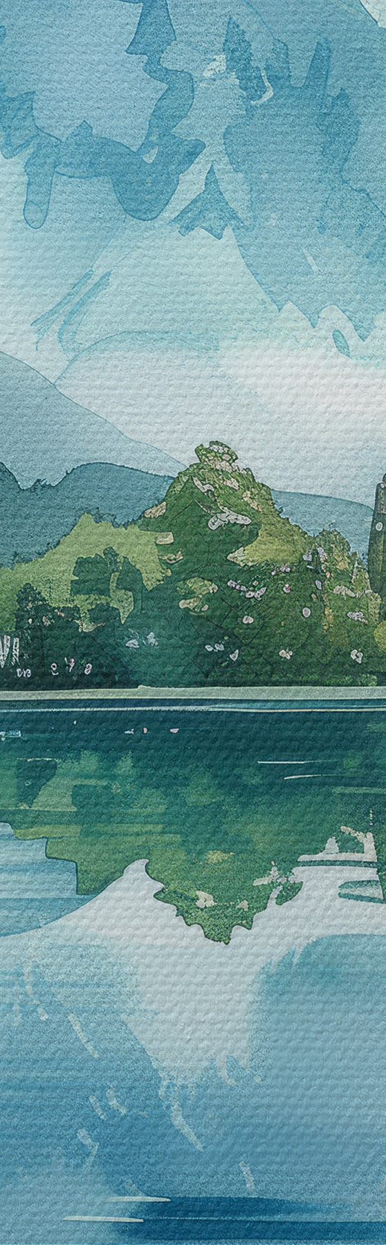 Obraz Akwarela góry krajobraz, rzeka, zielone i niebieskie kolory Nr s40310