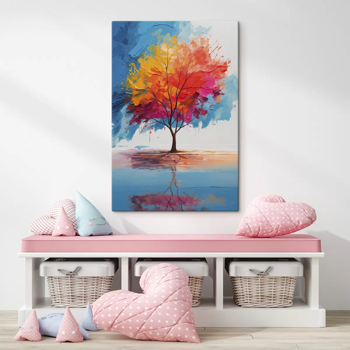 Obraz Abstrakcyjne wielokolorowe drzewo na jeziorze Nr s40455