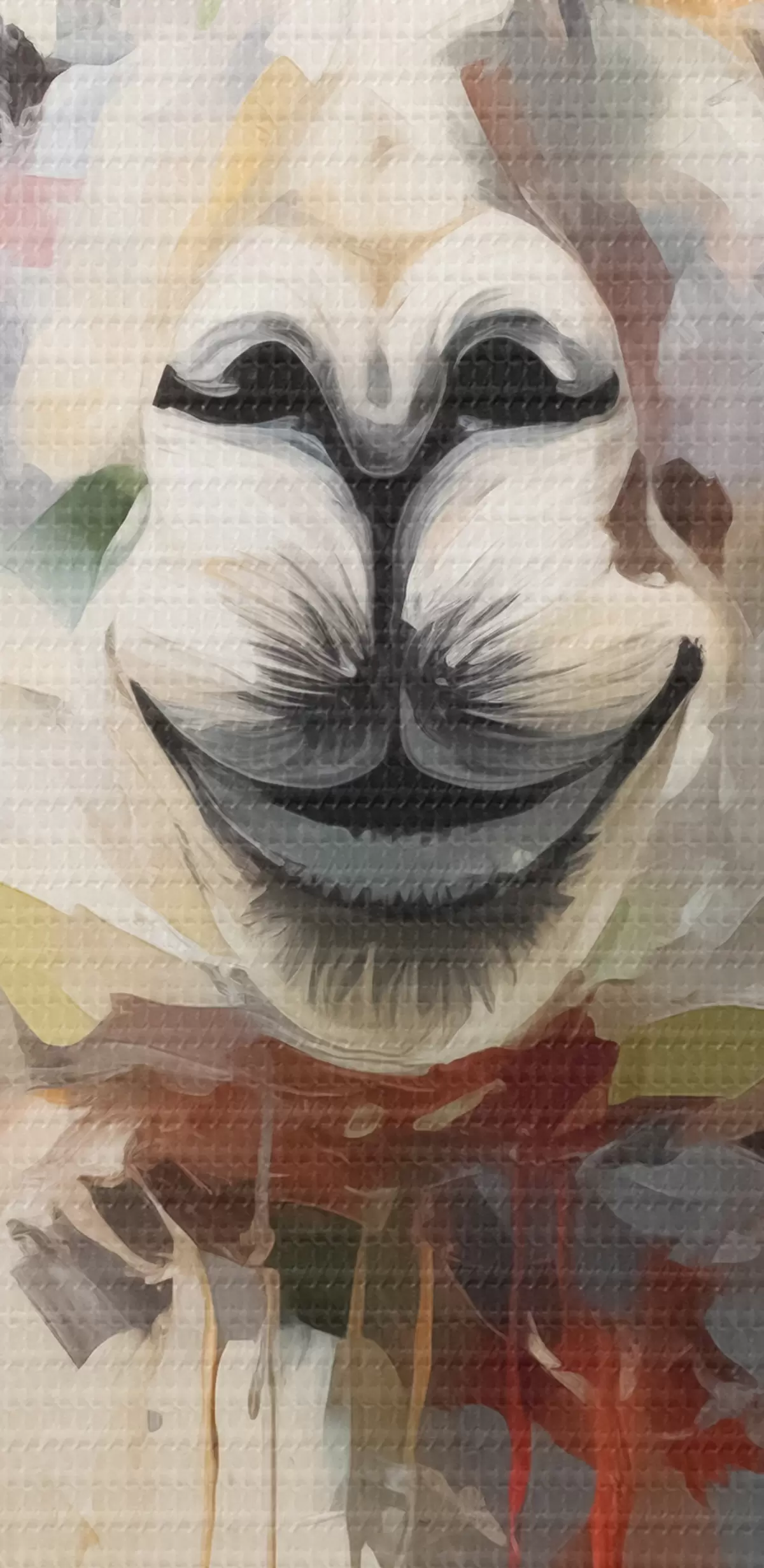 Obraz Biała lama z plamami farby na pastelowo-niebiesko-szarym tle Nr s40523