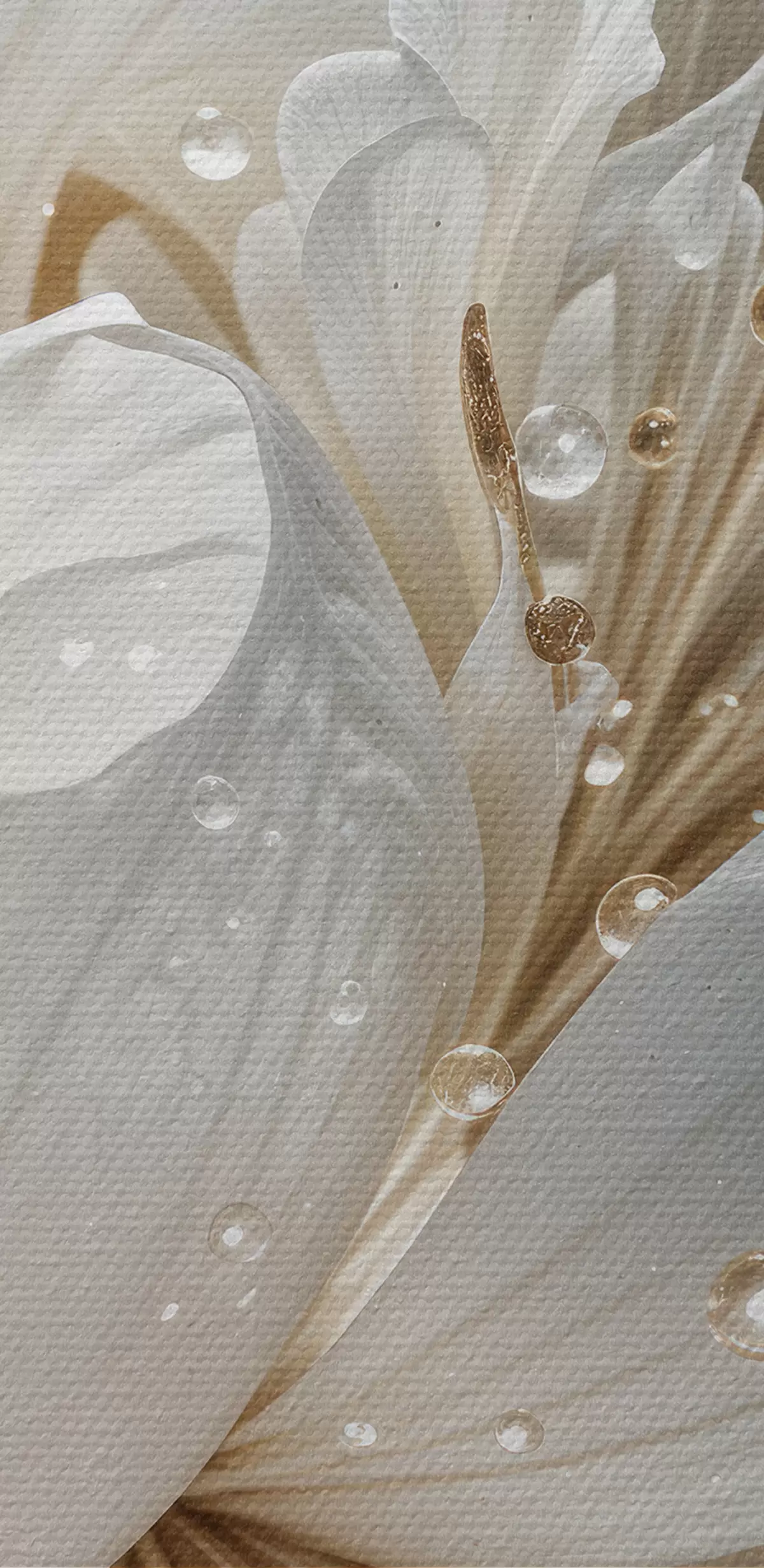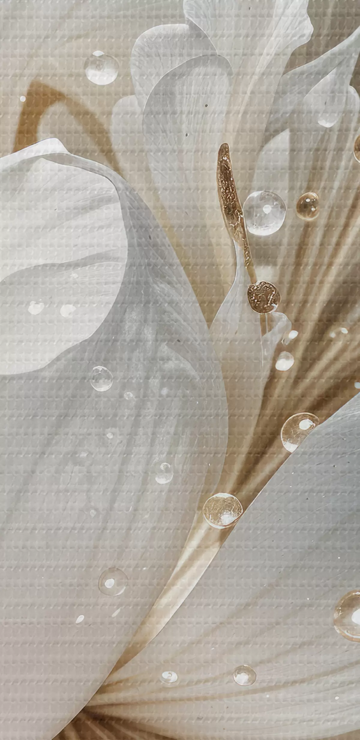 Obraz Zbliżenie białego kwiatu piwonii z kroplami wody na płatkach, na rozmytym tle Nr s40539