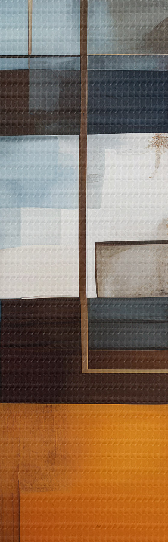 Obraz Abstrakcyjne kształty geometryczne w odcieniach niebieskiego, pomarańczowego i brązowego tworzą nowoczesną, minimalistyczną kompozycję Nr s40563