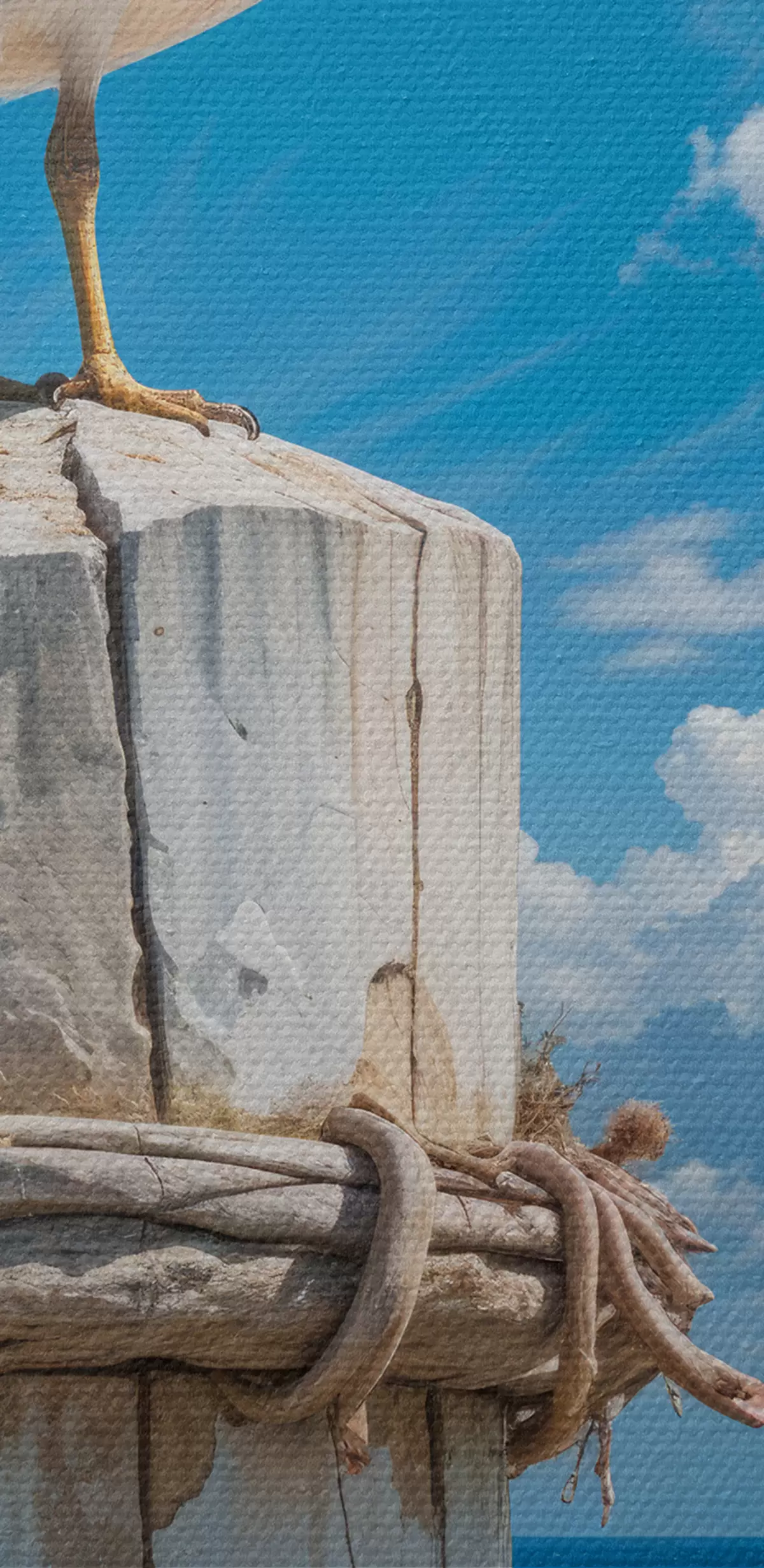 Drobny splot nici na tym płótnie przypomina powierzchnię profesjonalnych płócien artystycznych.