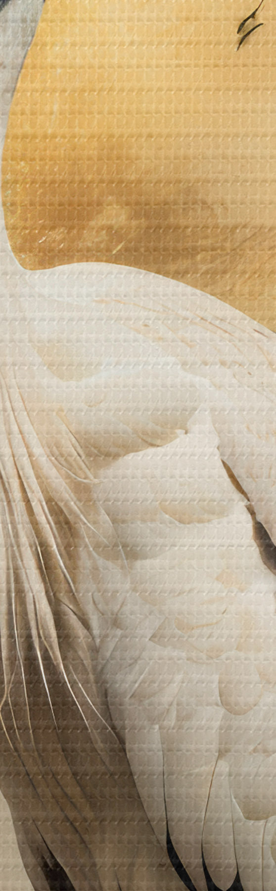 Obraz Majestatyczny szary żuraw stojący przed dużym księżycem w pełni, z rozmytym naturalnym tłem Nr s40591