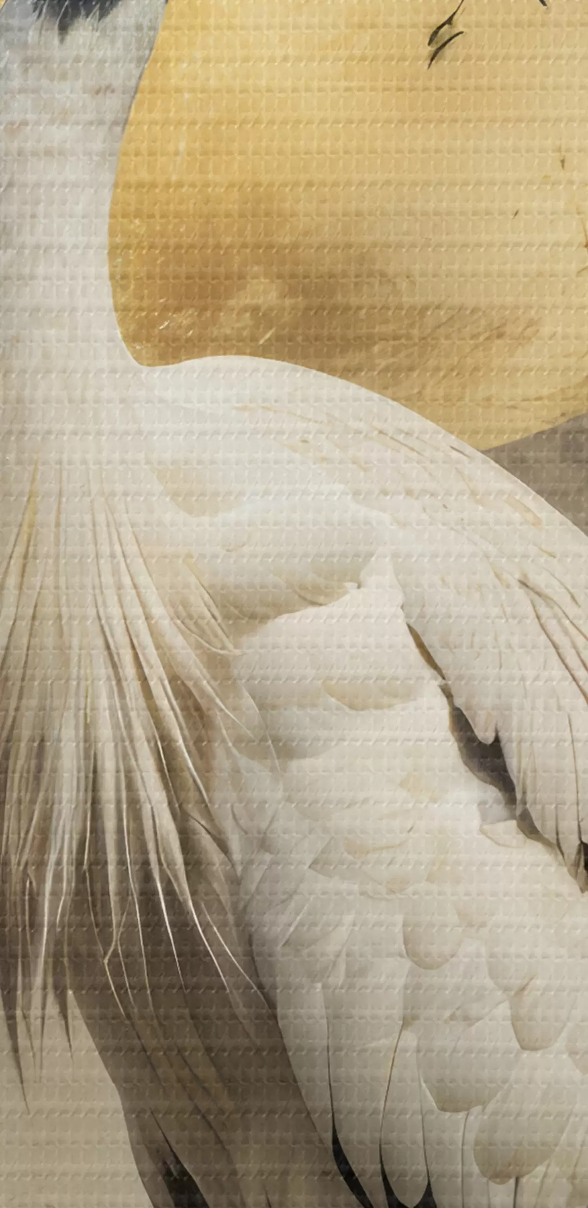Drobny splot nici na tym płótnie przypomina powierzchnię profesjonalnych płócien artystycznych.