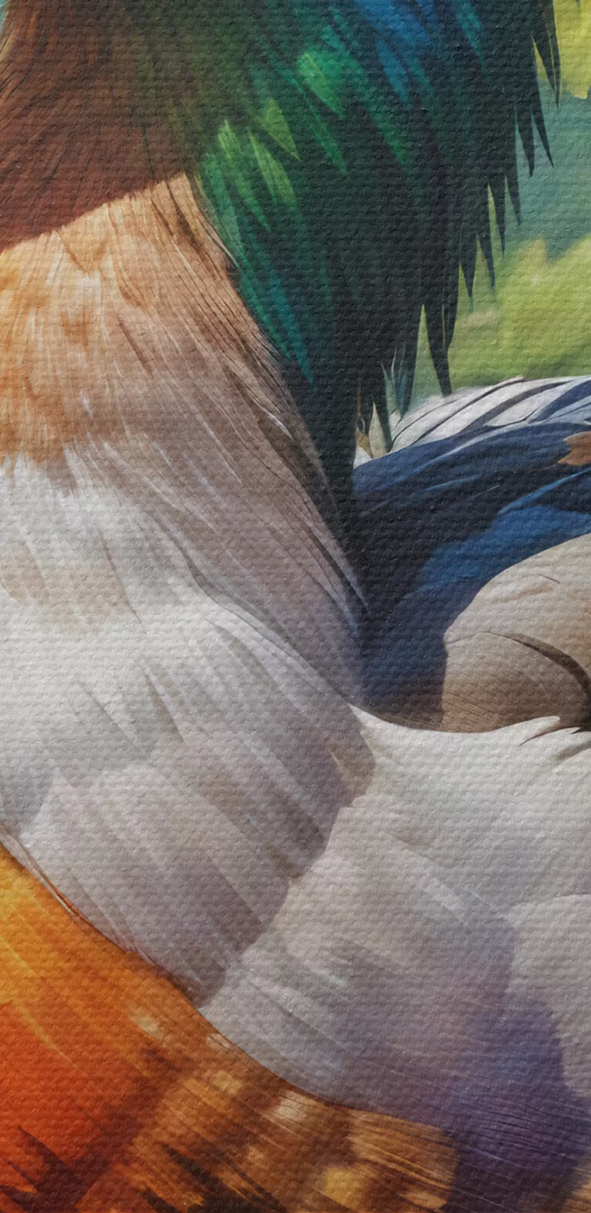 Do zamówienia dostępne są trzy rodzaje materiału: Economic Canvas - gęsty i trwały materiał do druku cyfrowego, identyczny z płótnem malarskim, wodoodporna powierzchnia, realistyczne odwzorowanie szczegółów, materiał średnioziarnisty. Premium Canvas - tekstura przypominająca płótno malarskie (przeplatane drobne nitki). Miękka, szczegółowa reprodukcja obrazu na matowej powierzchni. Eco-Premium - wysokiej jakości tkanina w 100% bawełniana. Dzięki naturalnym włóknom bawełnianym materiał jest trwały i odporny na zużycie. Doskonałe odwzorowanie kolorów i szczegółów.