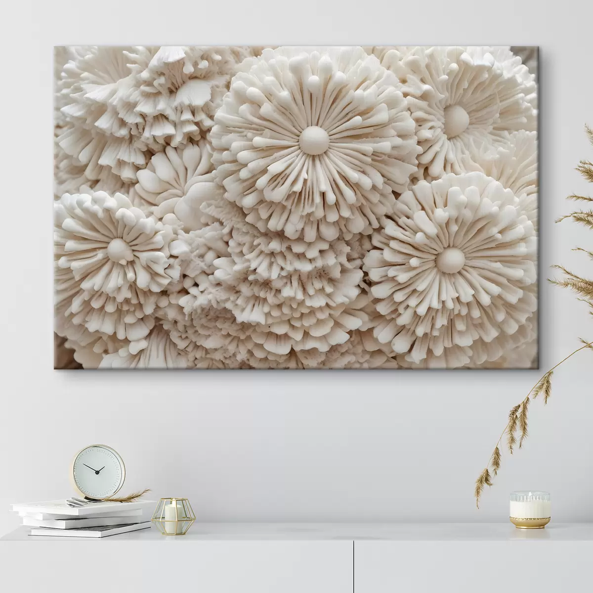 Obraz Zbliżenie na skupisko delikatnych, kremowych struktur przypominających koralowce, tworzących miękki, teksturowany nadruk Nr s40614
