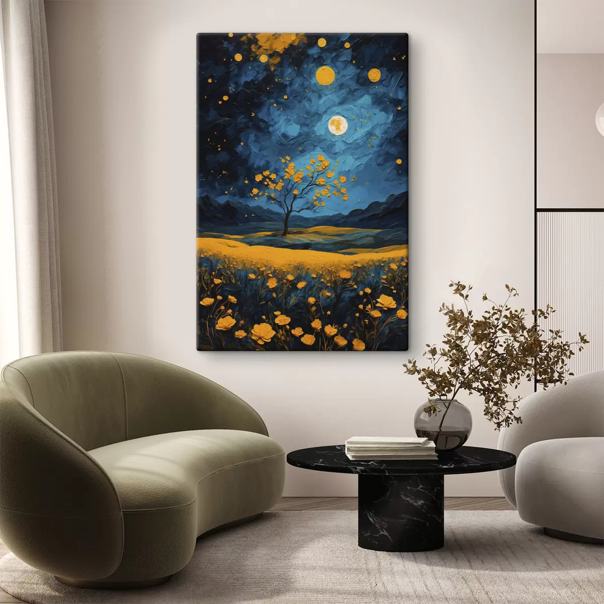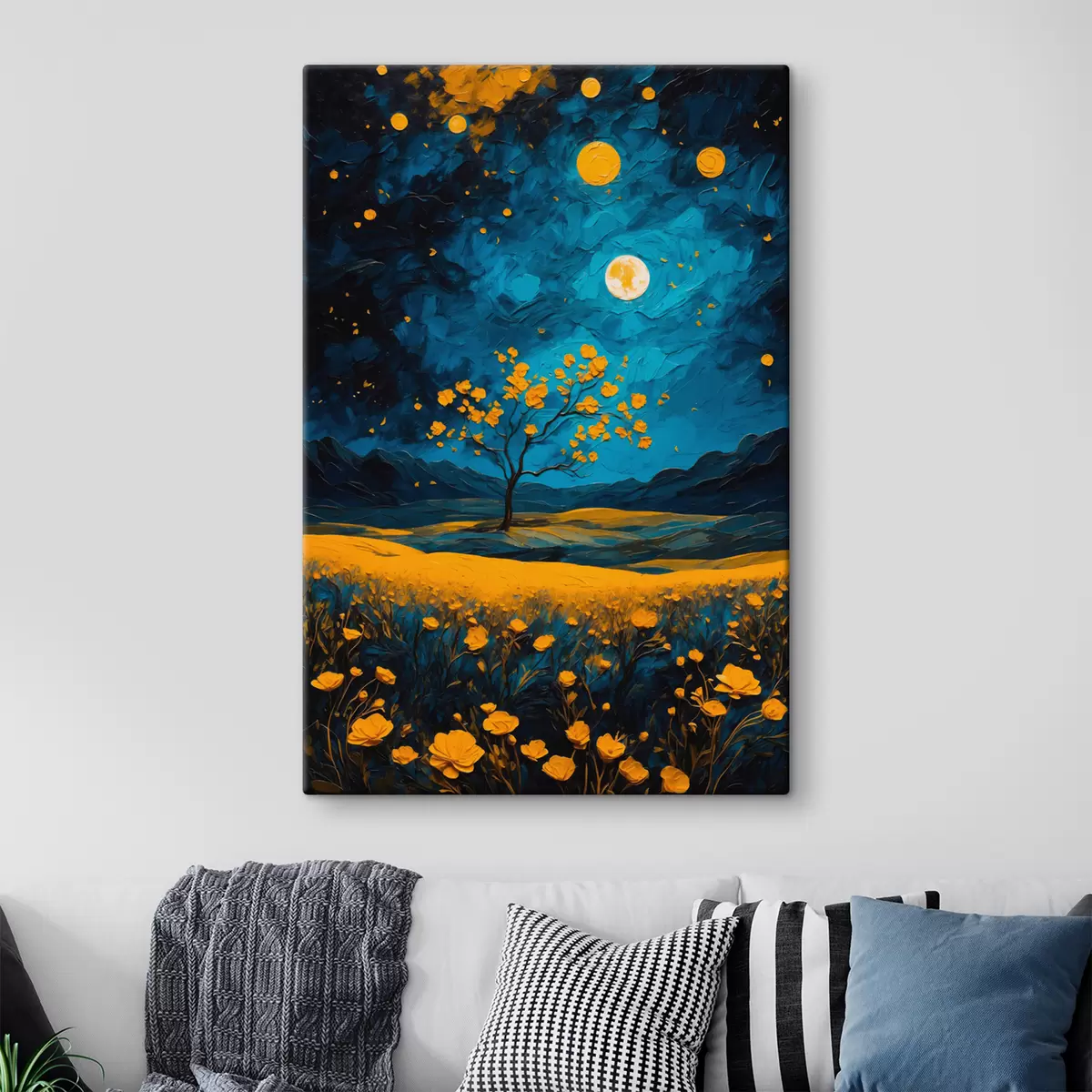 Obraz Pole żółtych kwiatów nocą Nr s40643