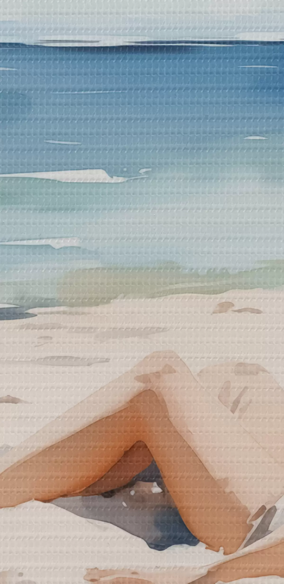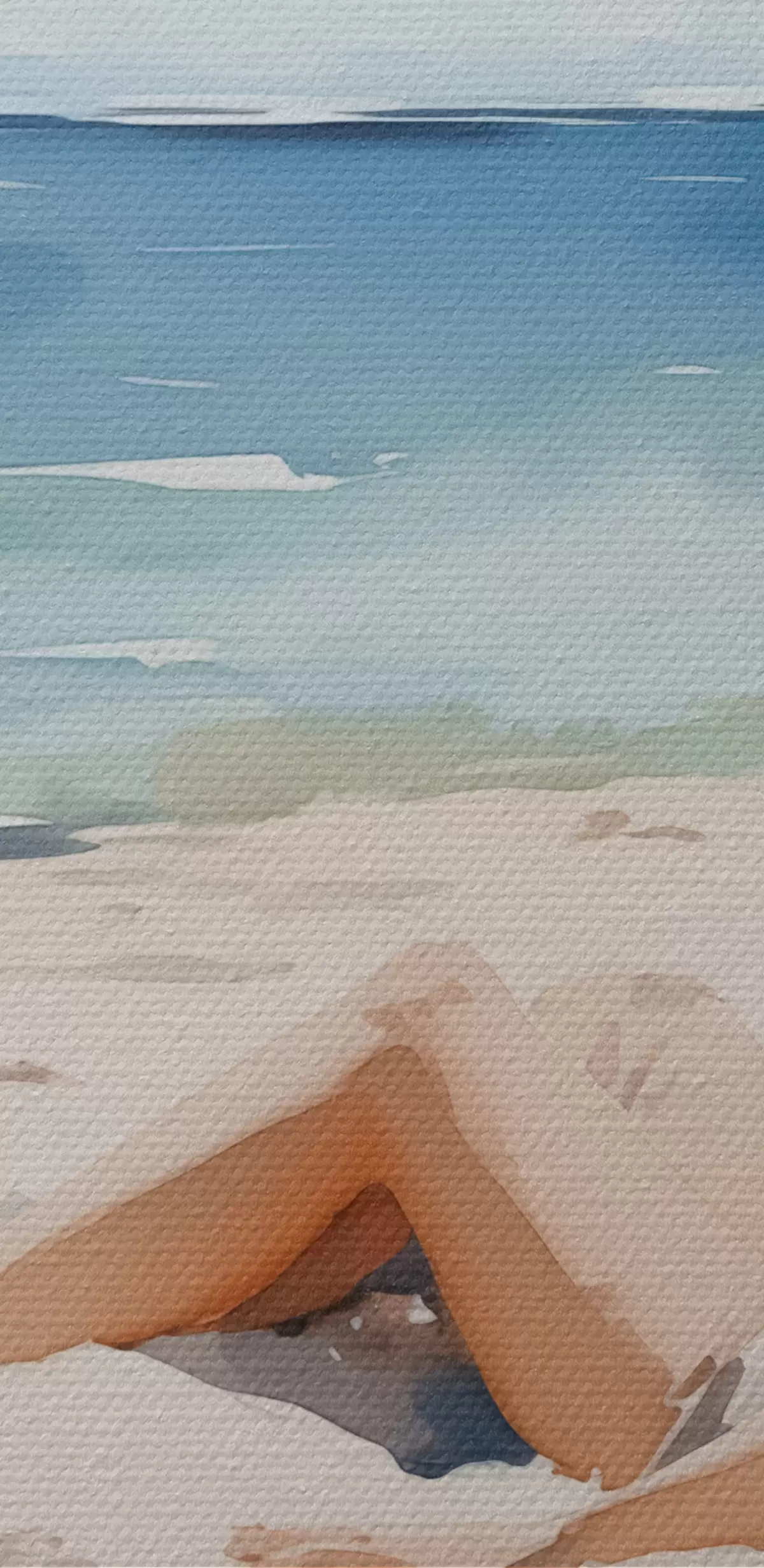 Obraz Dziewczyna relaksująca się na plaży nad morzem akwarela Nr s40679
