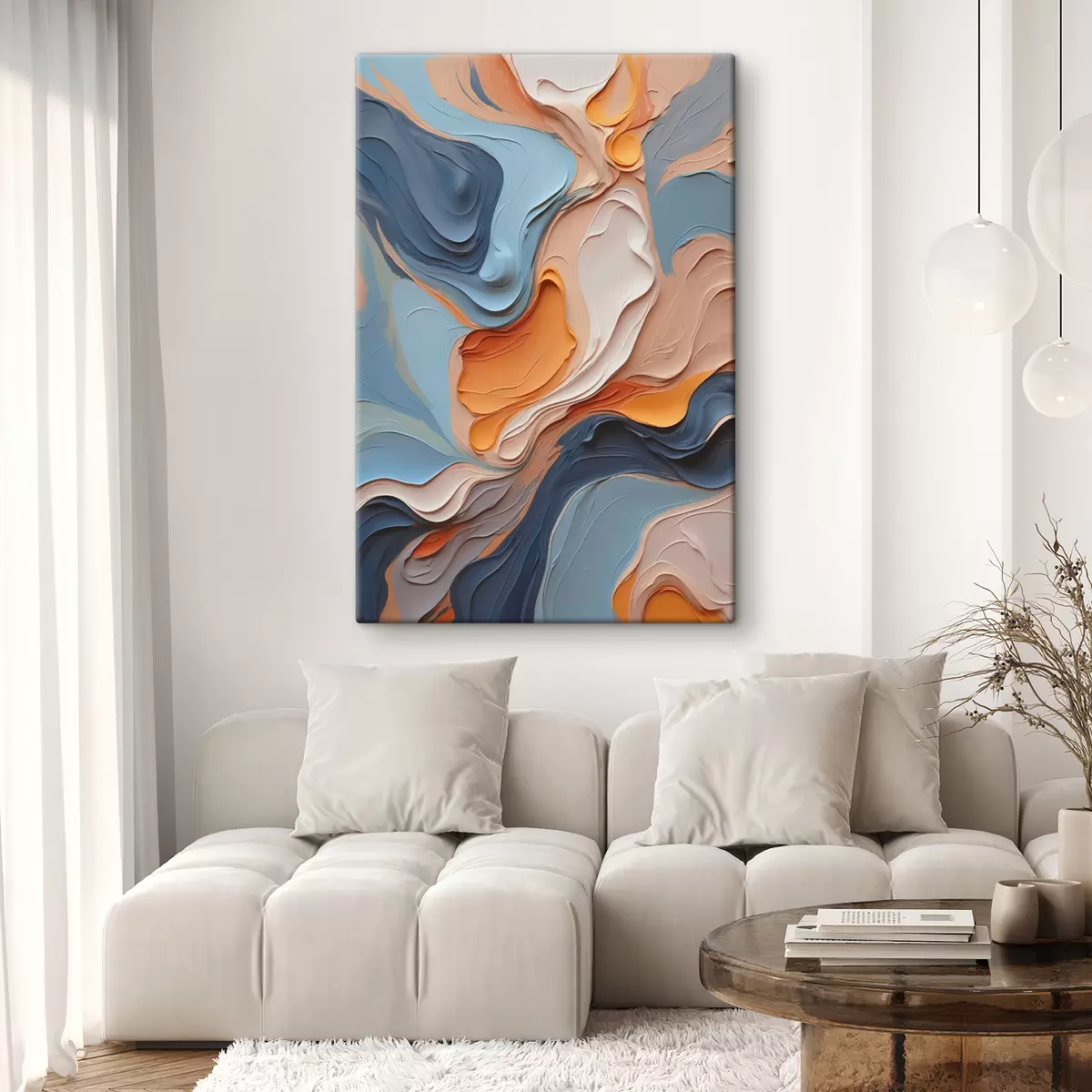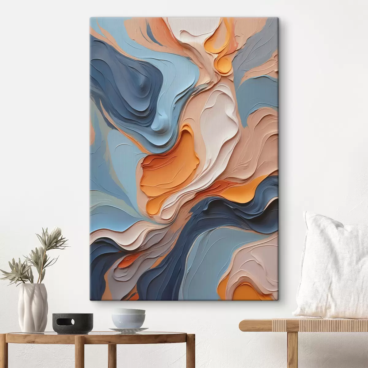 Obraz Abstrakcja w odcieniach niebieskiego i pomarańczowego z imitacją tekstury s40743