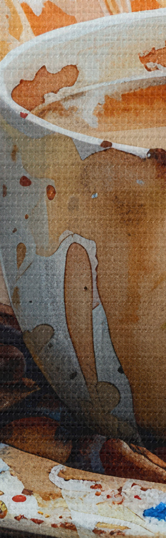Obraz można delikatnie przetrzeć suchą, miękką szmatką lub gąbką; nie zaleca się używania mokrych produktów. Użycie wilgotnej gąbki jest dozwolone tylko wtedy, gdy obraz został polakierowany.