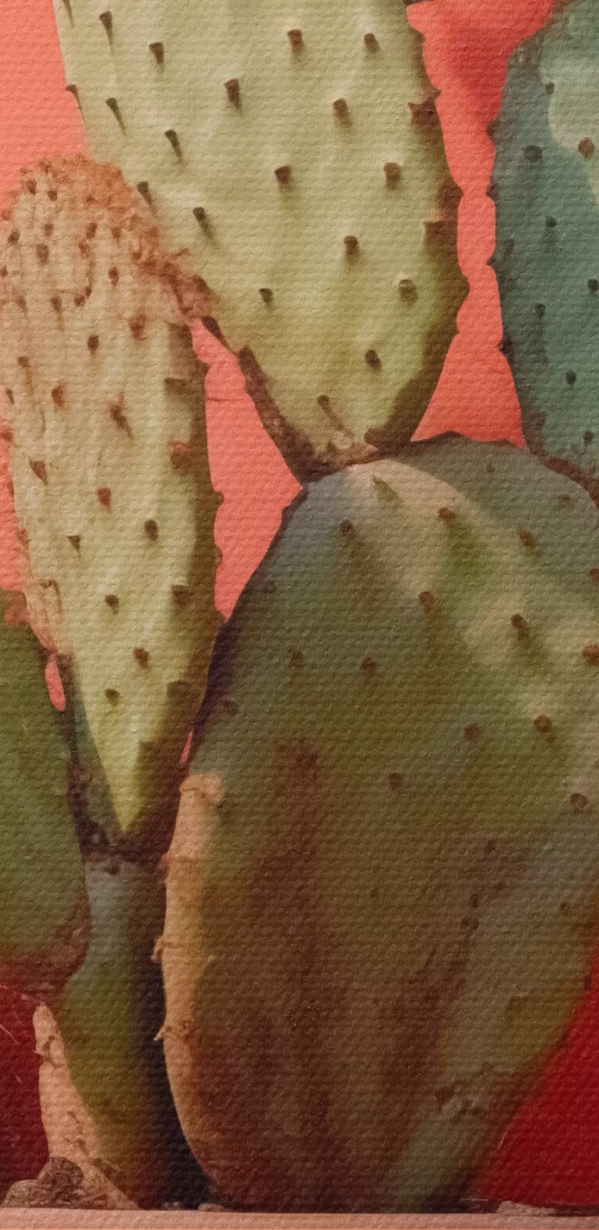 Obraz Kaktus w jasnej doniczce na tle różowo-czerwonej ściany Nr s40800