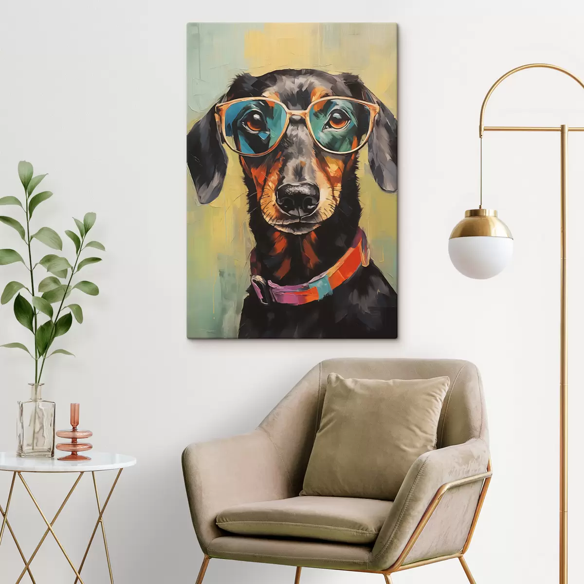 Obraz Portret czarnego jamnika w okularach Nr s40803
