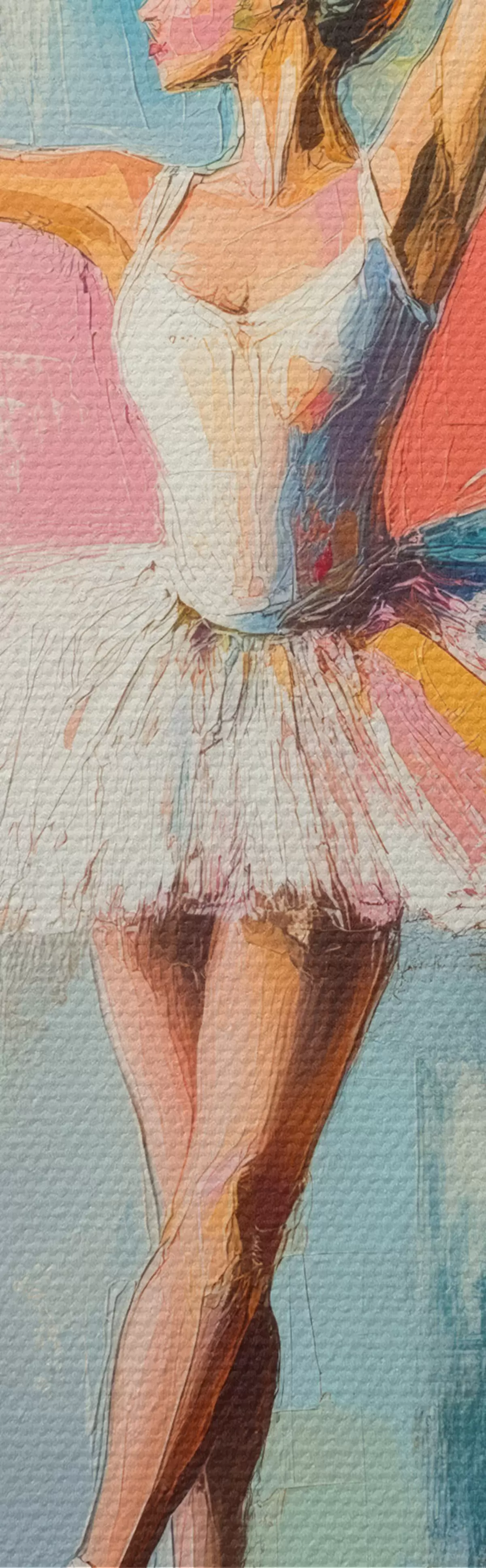 Drobny splot nici na tym płótnie przypomina powierzchnię profesjonalnych płócien artystycznych.