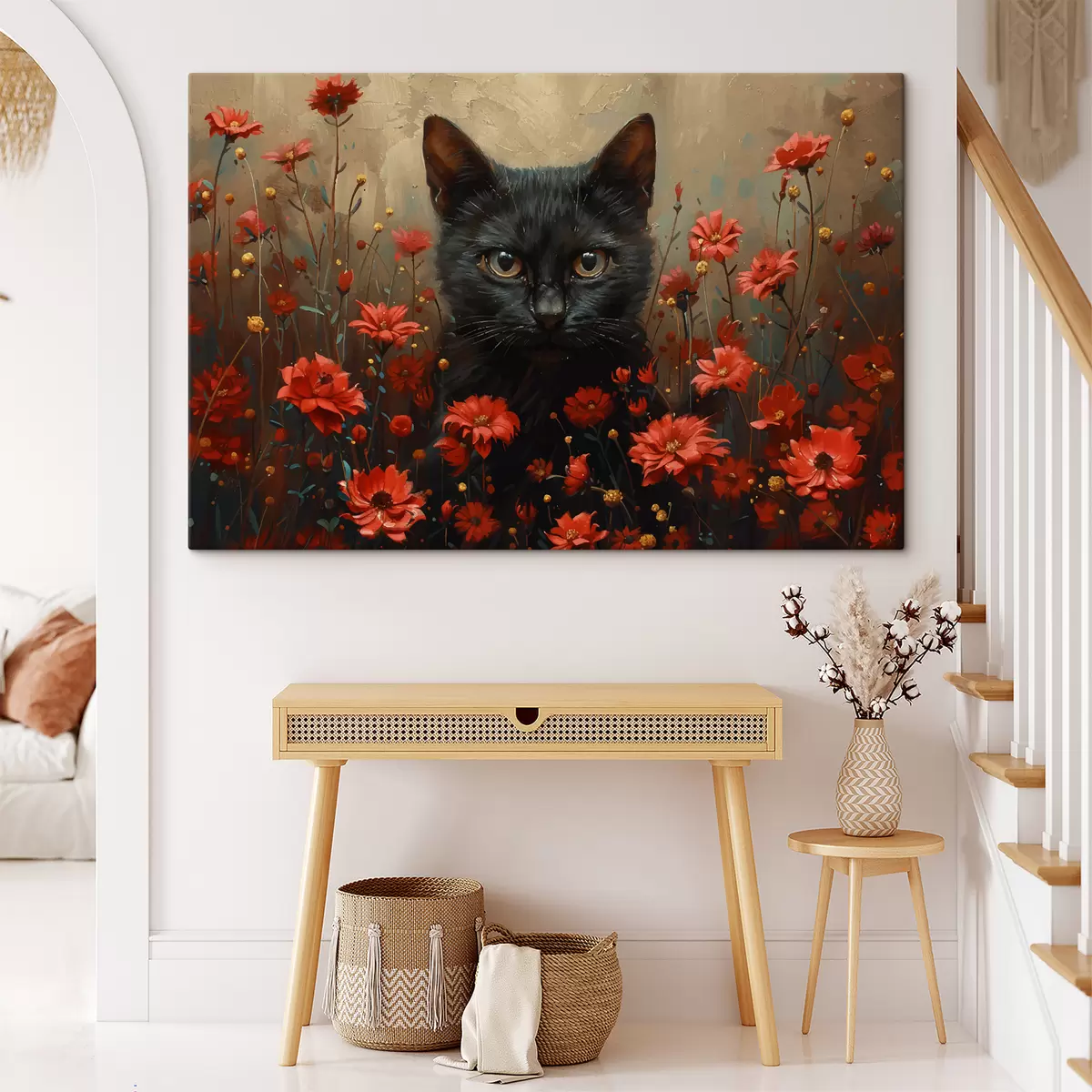 Obraz Kot, kwiaty, czarny kot Nr s40839